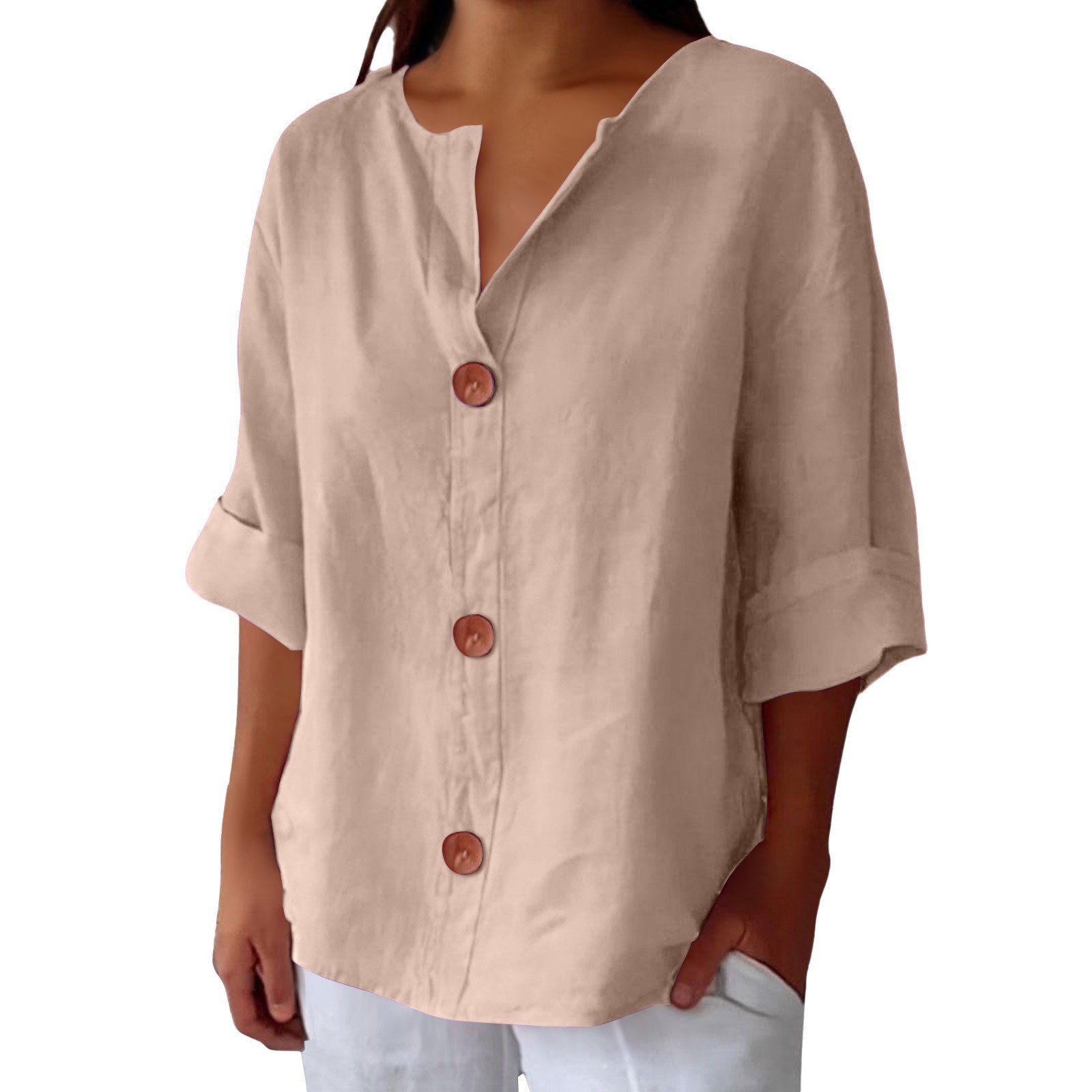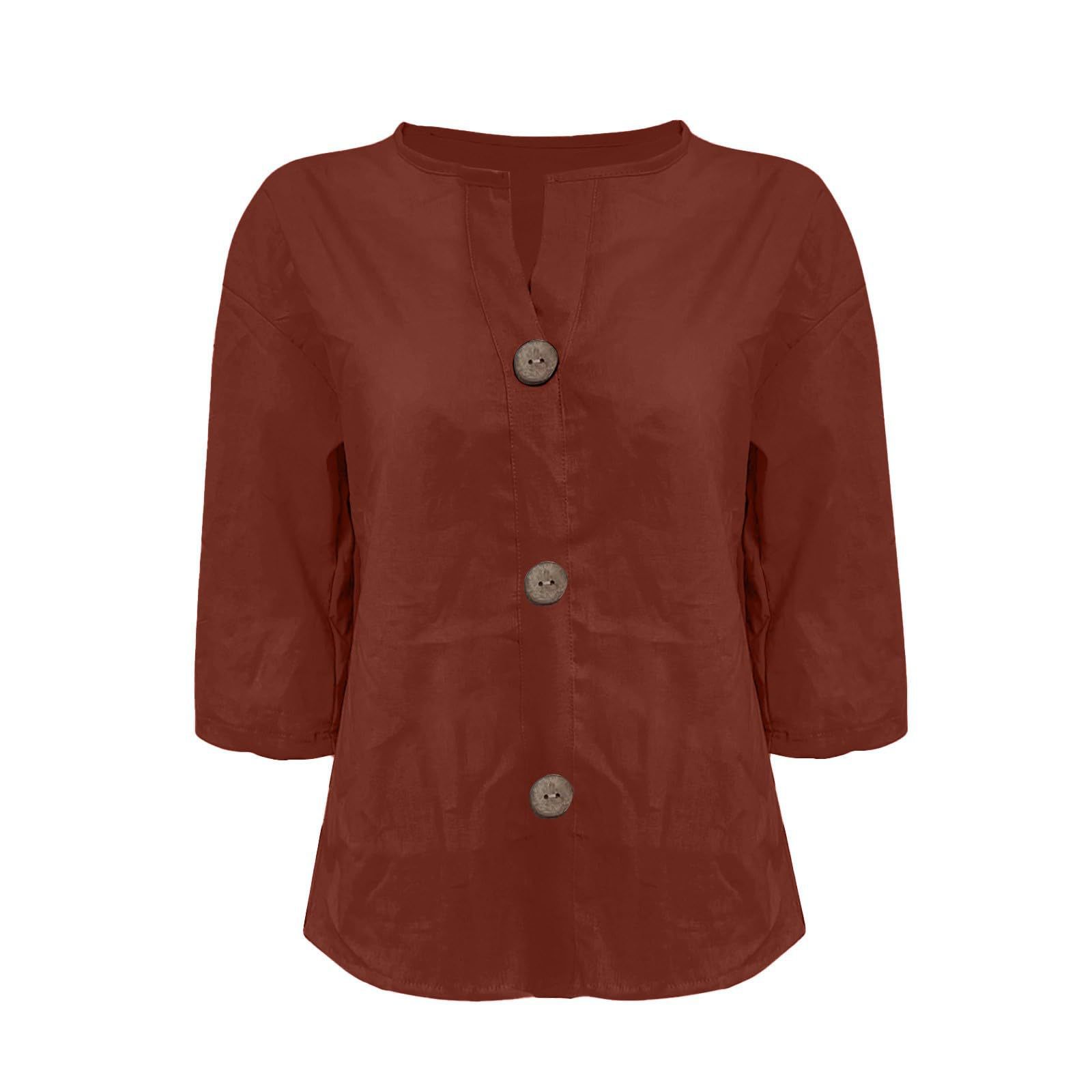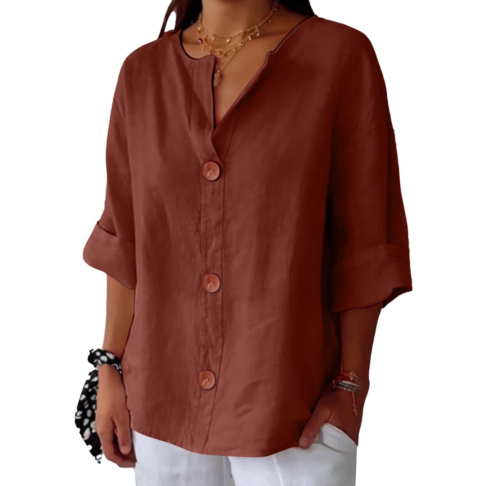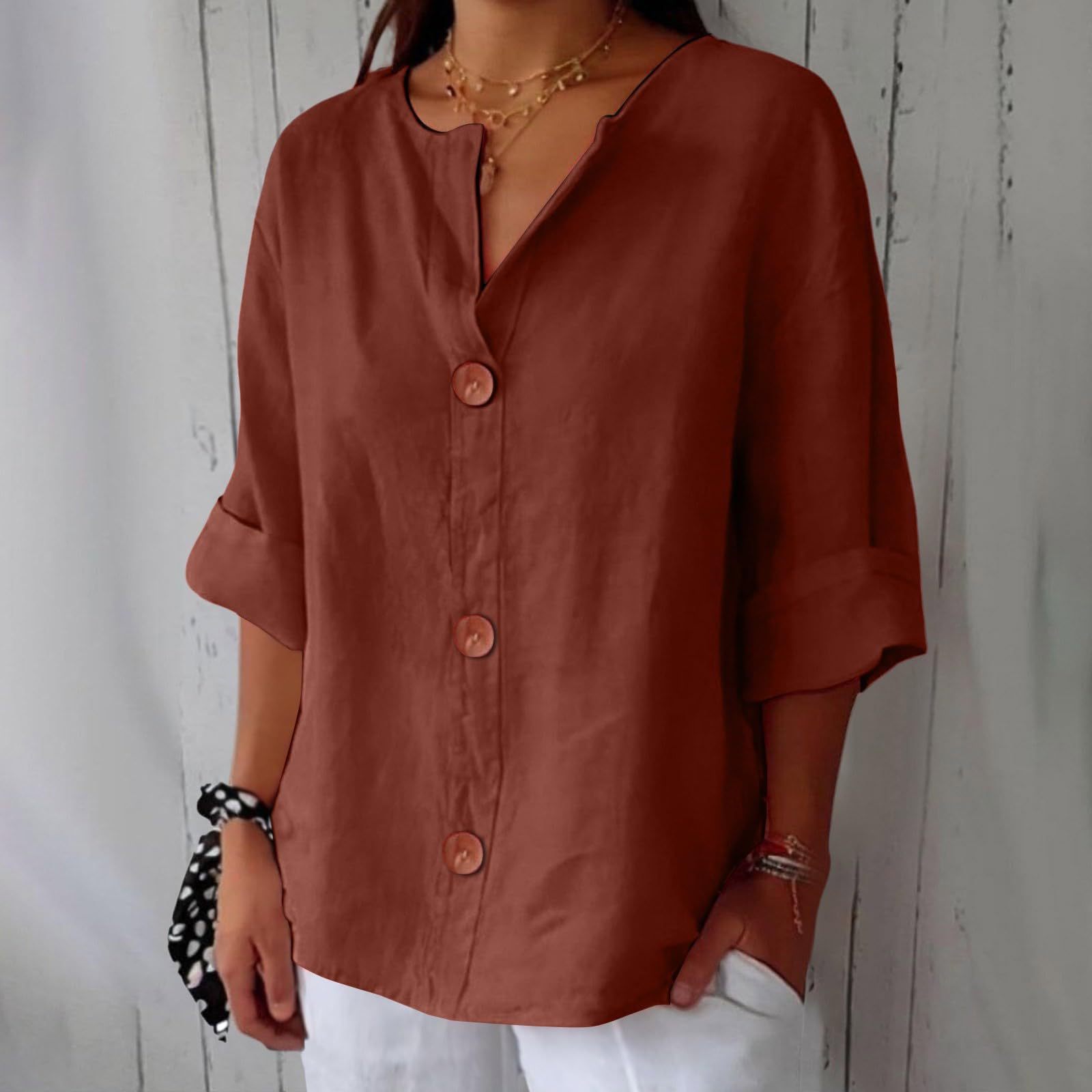 2025 봄 여름 신상품 아마존 해외 직구 유럽 및 미국 신상 루즈핏 티셔츠 여성용 브이넥 순면 버튼 탑