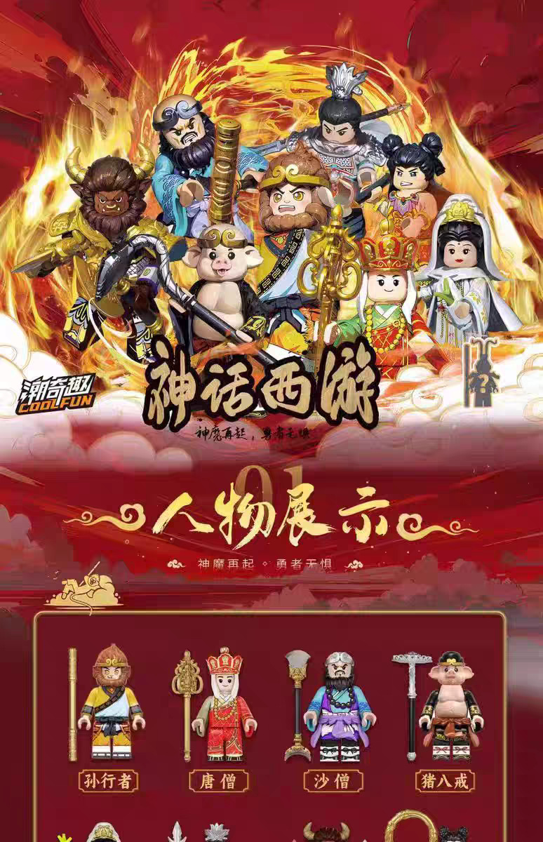 트렌디하고 흥미로운 새로운 블라인드 박스 서유기 손오공 관음 미니 피규어 빌딩 블록 조립 모델 장식품 국가 유행 장난감 선물