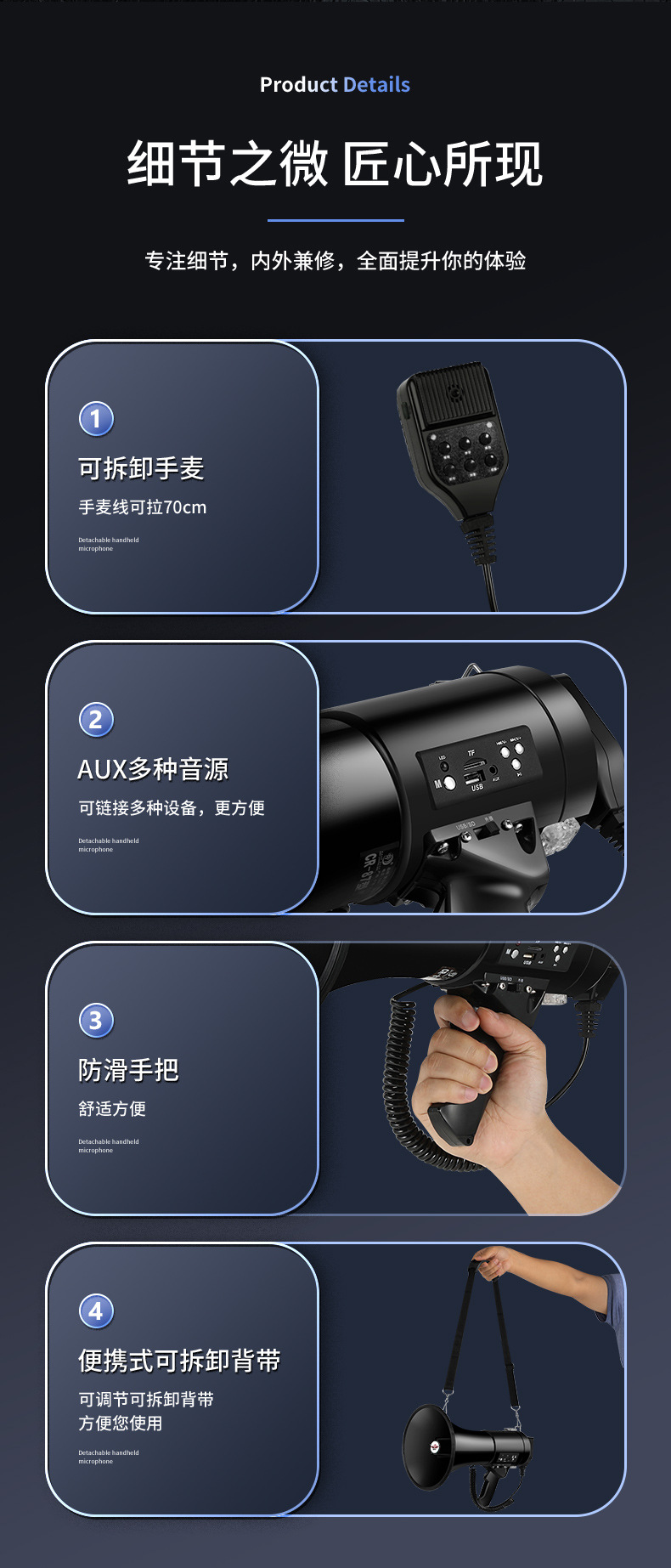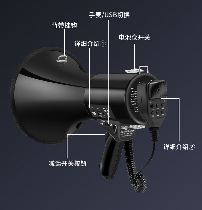 Thunder King RK-87 메가폰 50W 고출력 야외 프로모션 및 판매 Bluetooth 녹음 카드 확성기 스피커스토어 가기