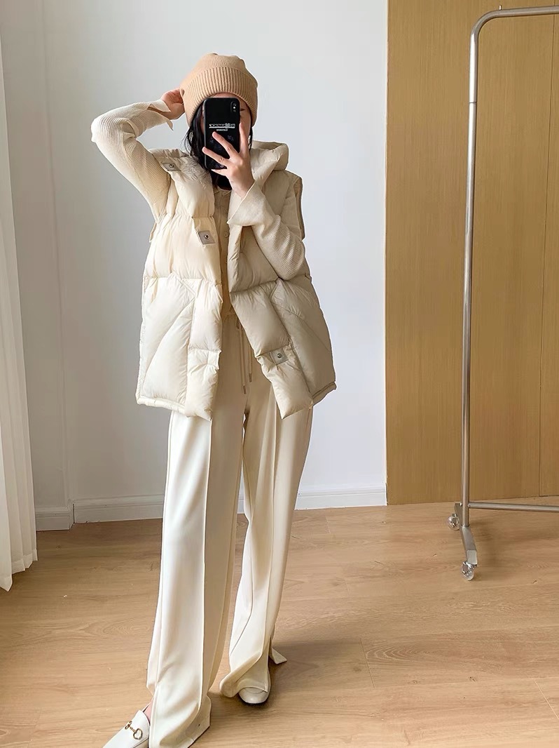 다운 조끼 여성의 새로운 짧은 가을, 겨울 한국어 버전 90 화이트 오리 다운 조끼 조끼 두꺼운 빵 코트 와이드스토어 가기