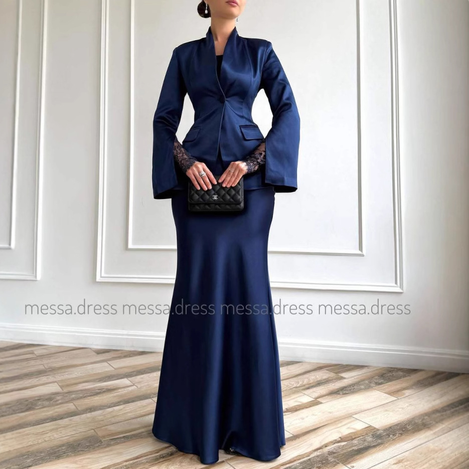 2025 가을 신상 유럽풍&미국풍 스타일의 다용도 슬릿 버튼 코트와 힙을 감싸는 새틴 스커트 세트 여성복스토어 가기