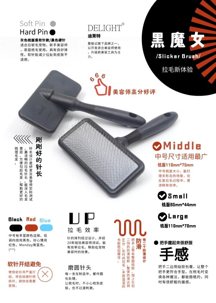 Chuanji 검은 마녀 바늘 빗 개와 고양이 인형을 위한 특수 빗, 빗질 빗, 애완동물용 빗질 빗