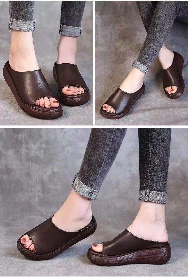 여름 복고 캐주얼 대형 샌들 및 슬리퍼 35-43 사이즈 두꺼운 밑창 슬리퍼 웨지 힐 엄마 신발 아우터웨어 하프 슬리퍼스토어 가기