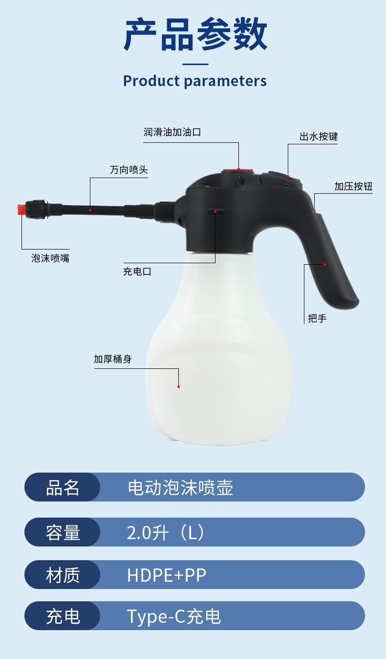 자동차 무선 전기 폼 스프레이 병 다기능 공기 펌프 고압 세차 원예 스프레이 병 스프레이 꽃 급수 도구