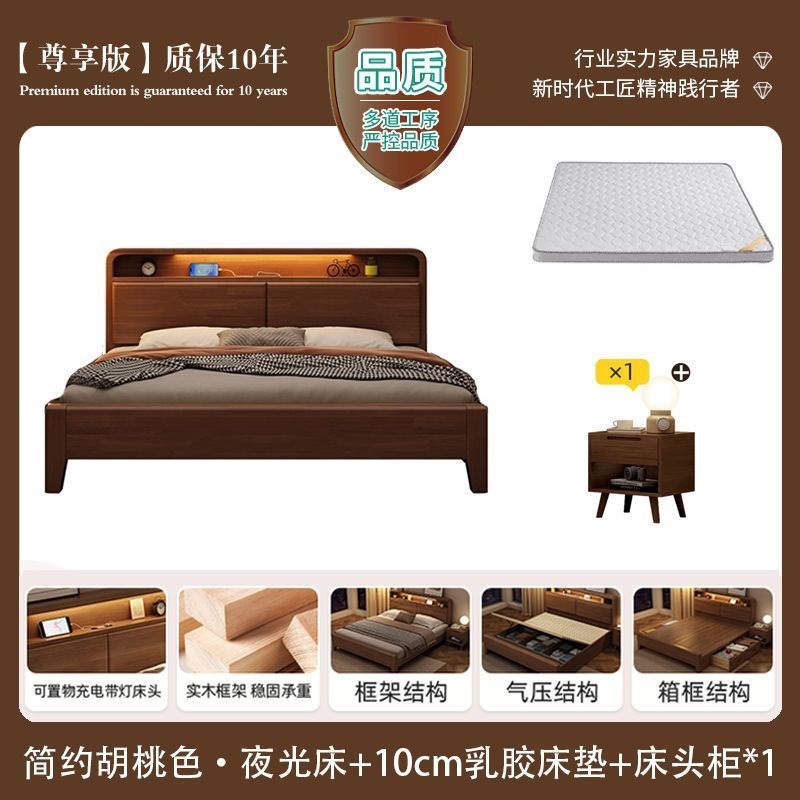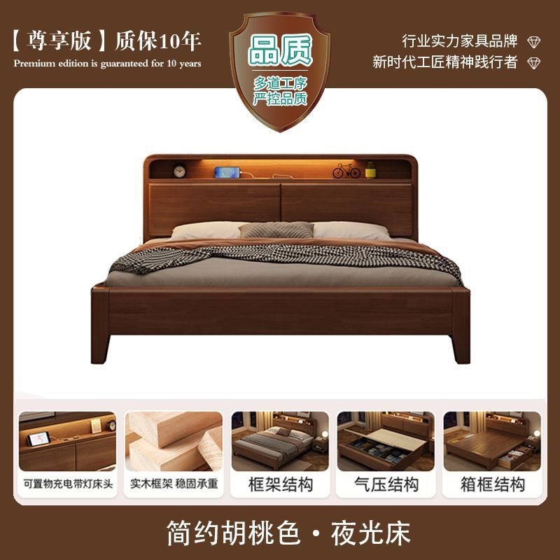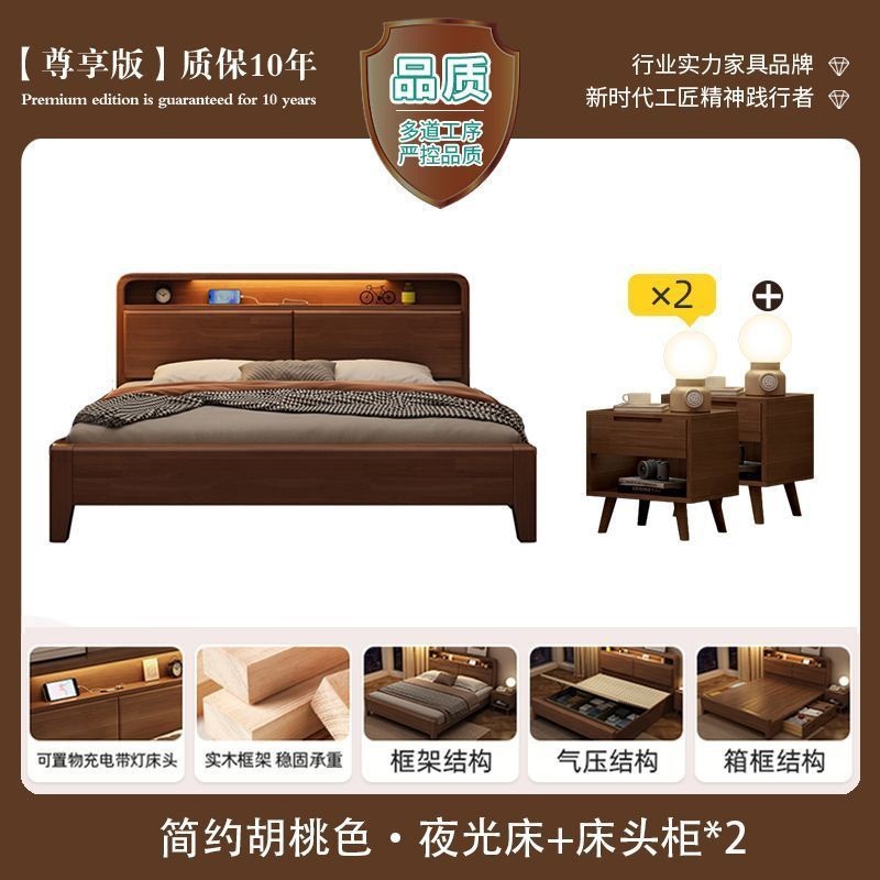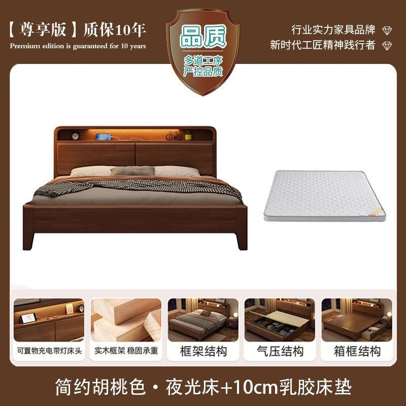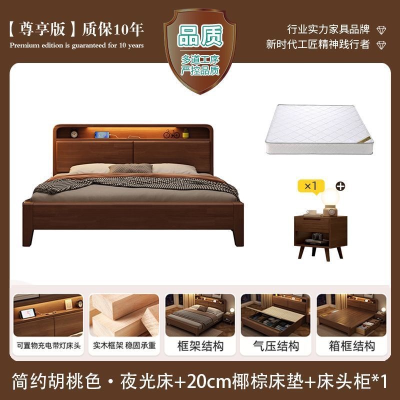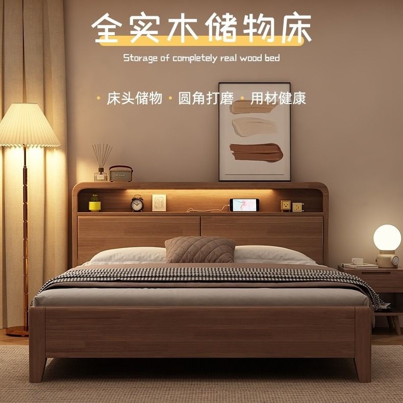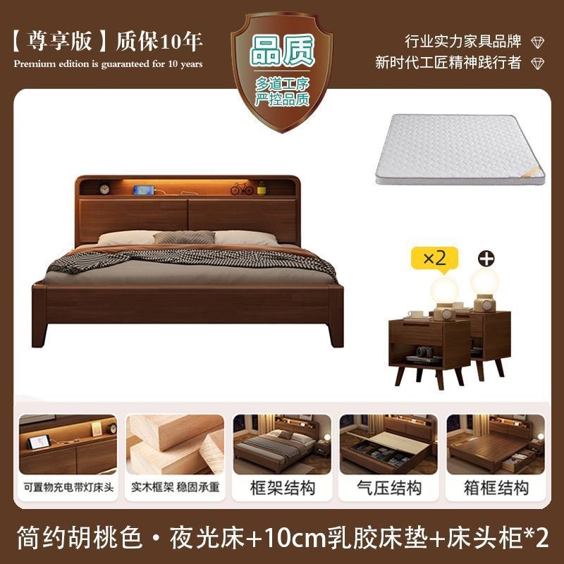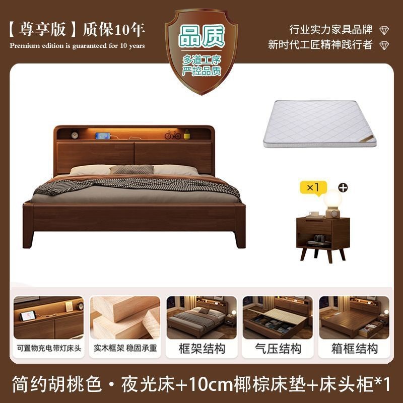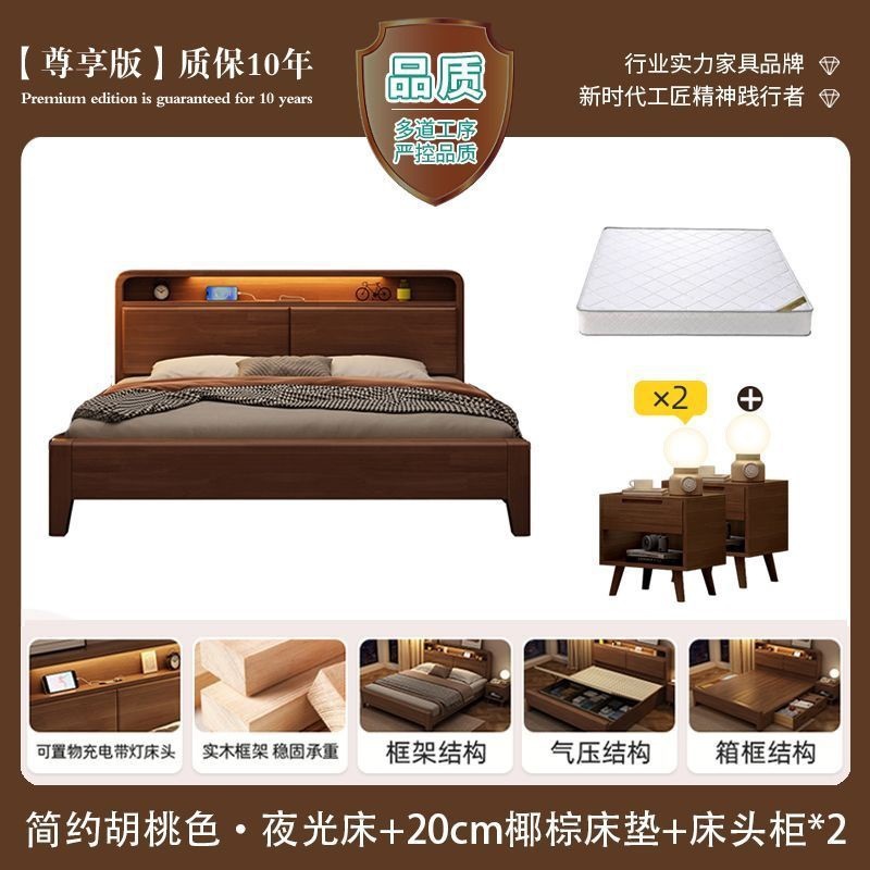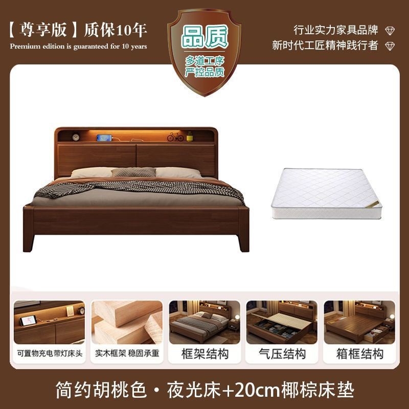 간단한 수납 원목 침대 호두 1.95m m 더블 침대 마스터 침실 경제적인 웨딩 침대 1.47m M 어린이 침대스토어 가기