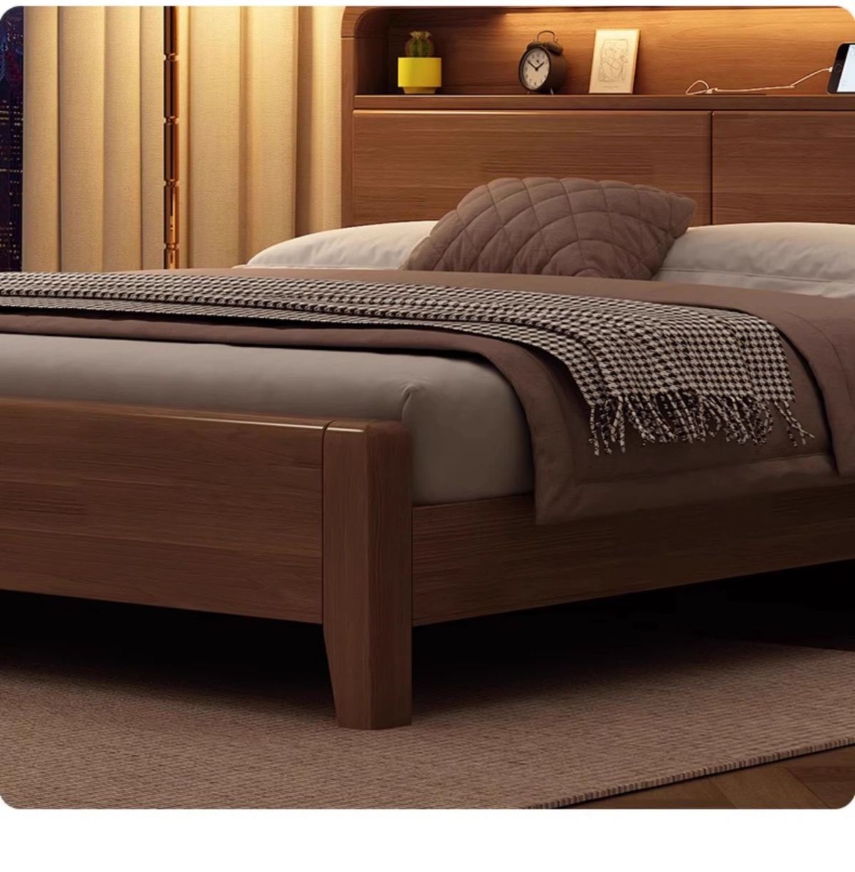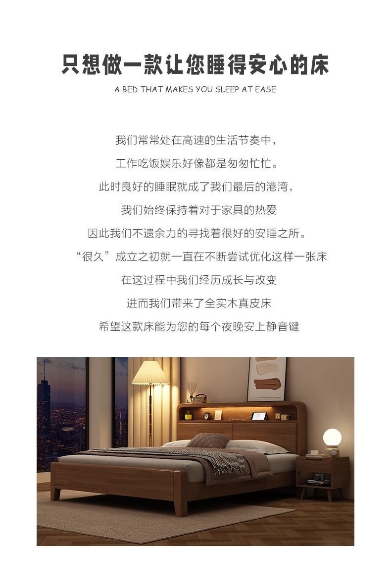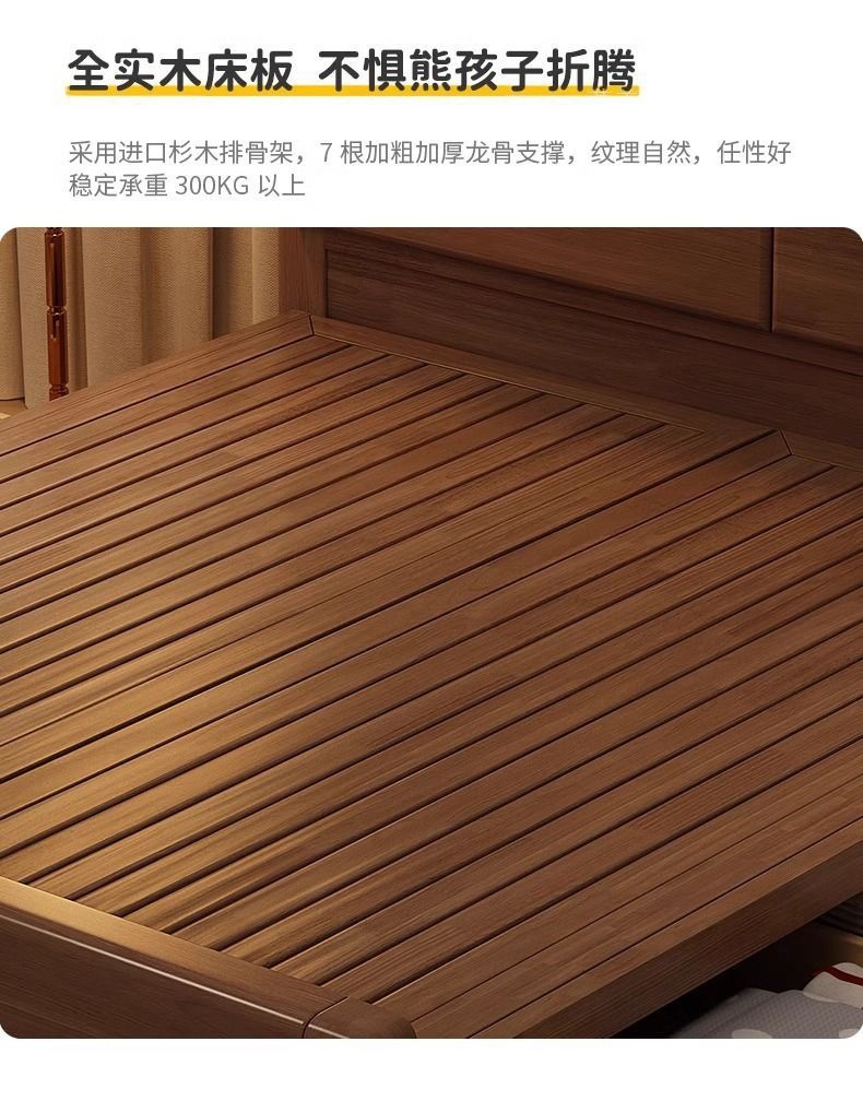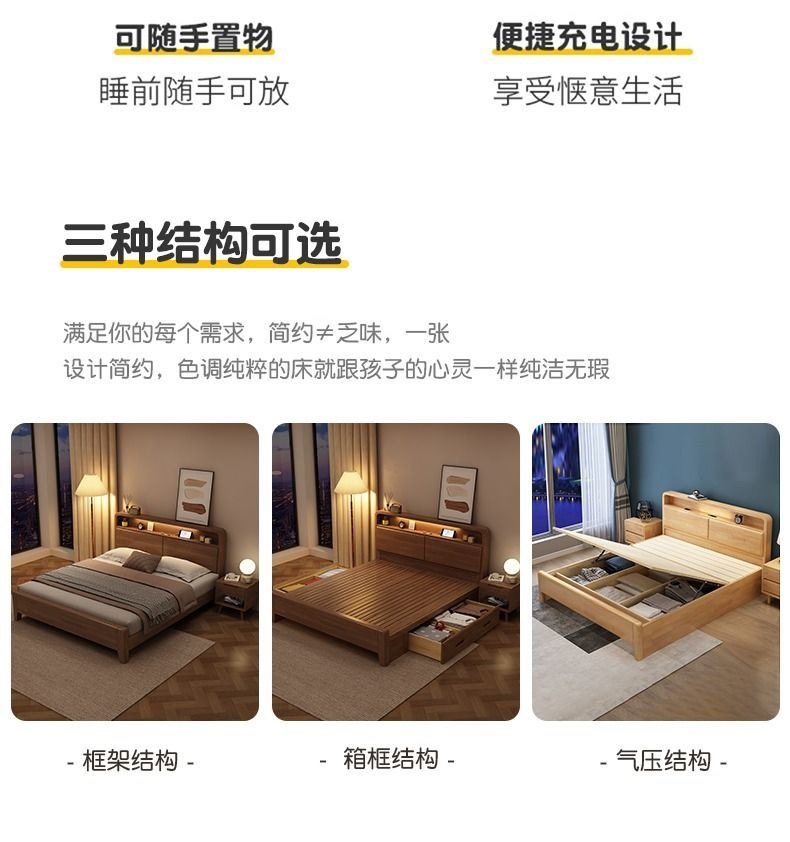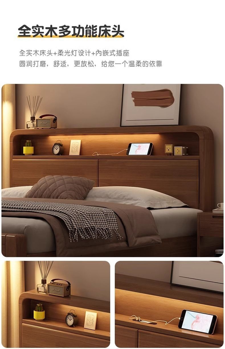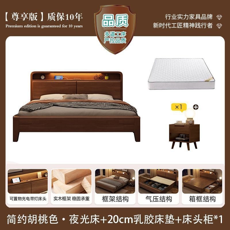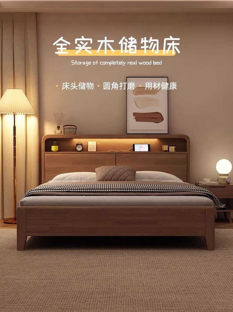 간단한 수납 원목 침대 호두 1.95m m 더블 침대 마스터 침실 경제적인 웨딩 침대 1.47m M 어린이 침대스토어 가기