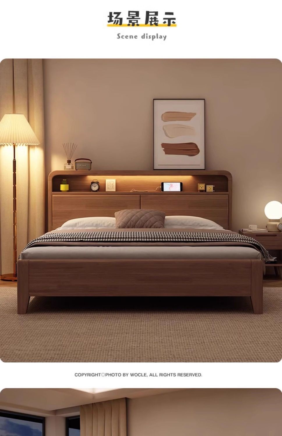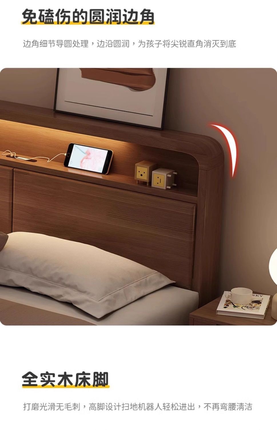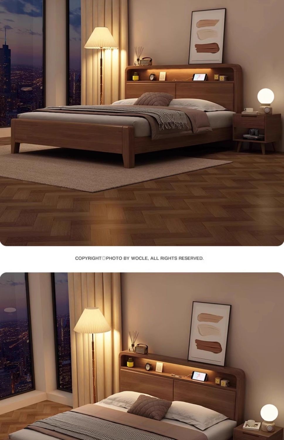 • 단단한 침대 + 침대 옆 터치 램프 + 원목 침대 옆 테이블*2