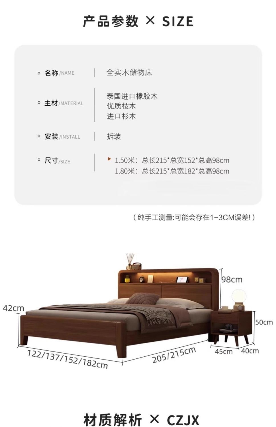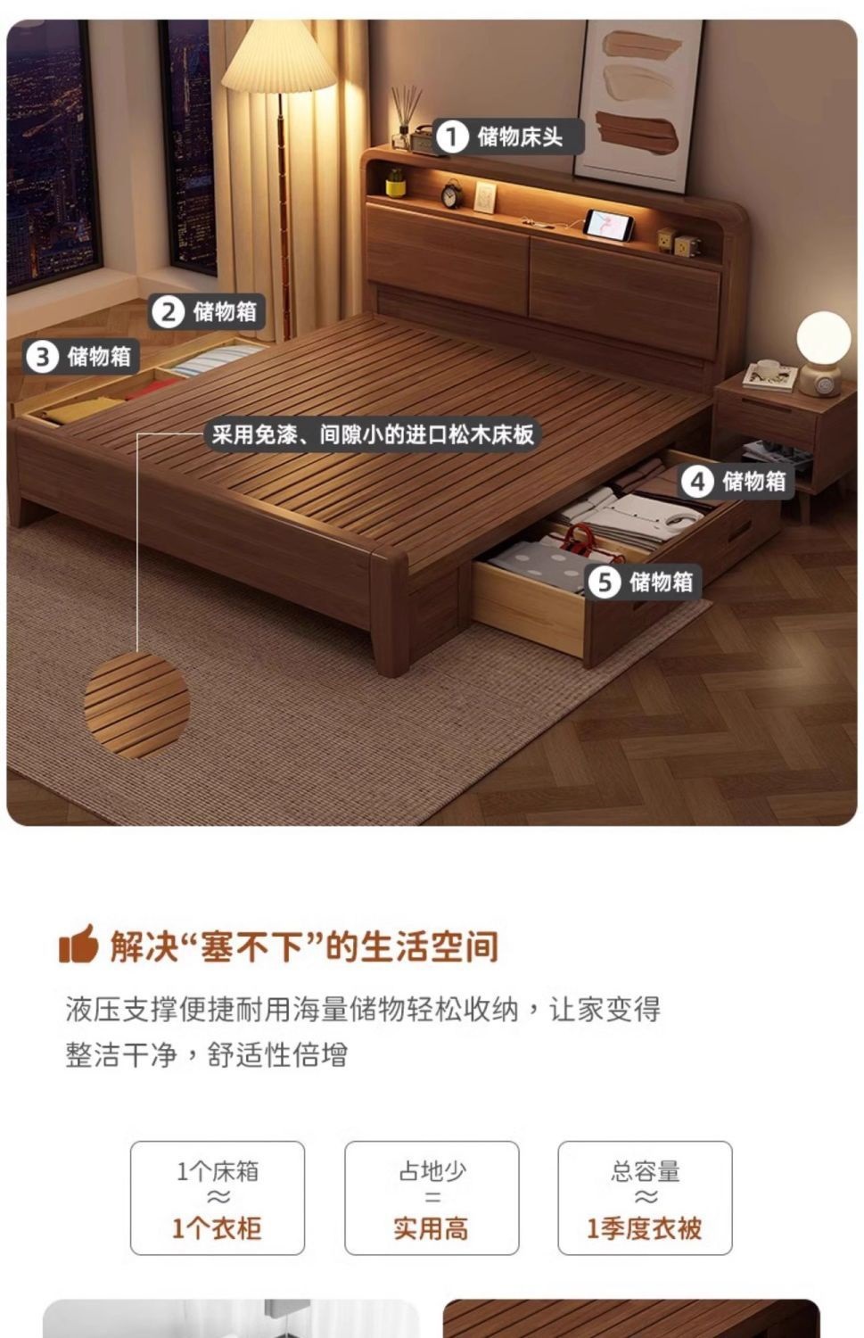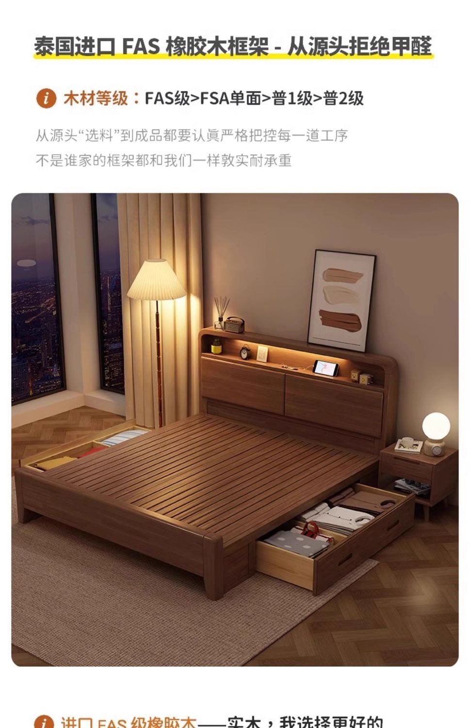 • 단단한 침대 + 침대 옆 터치 램프 + 원목 침대 옆 테이블*2