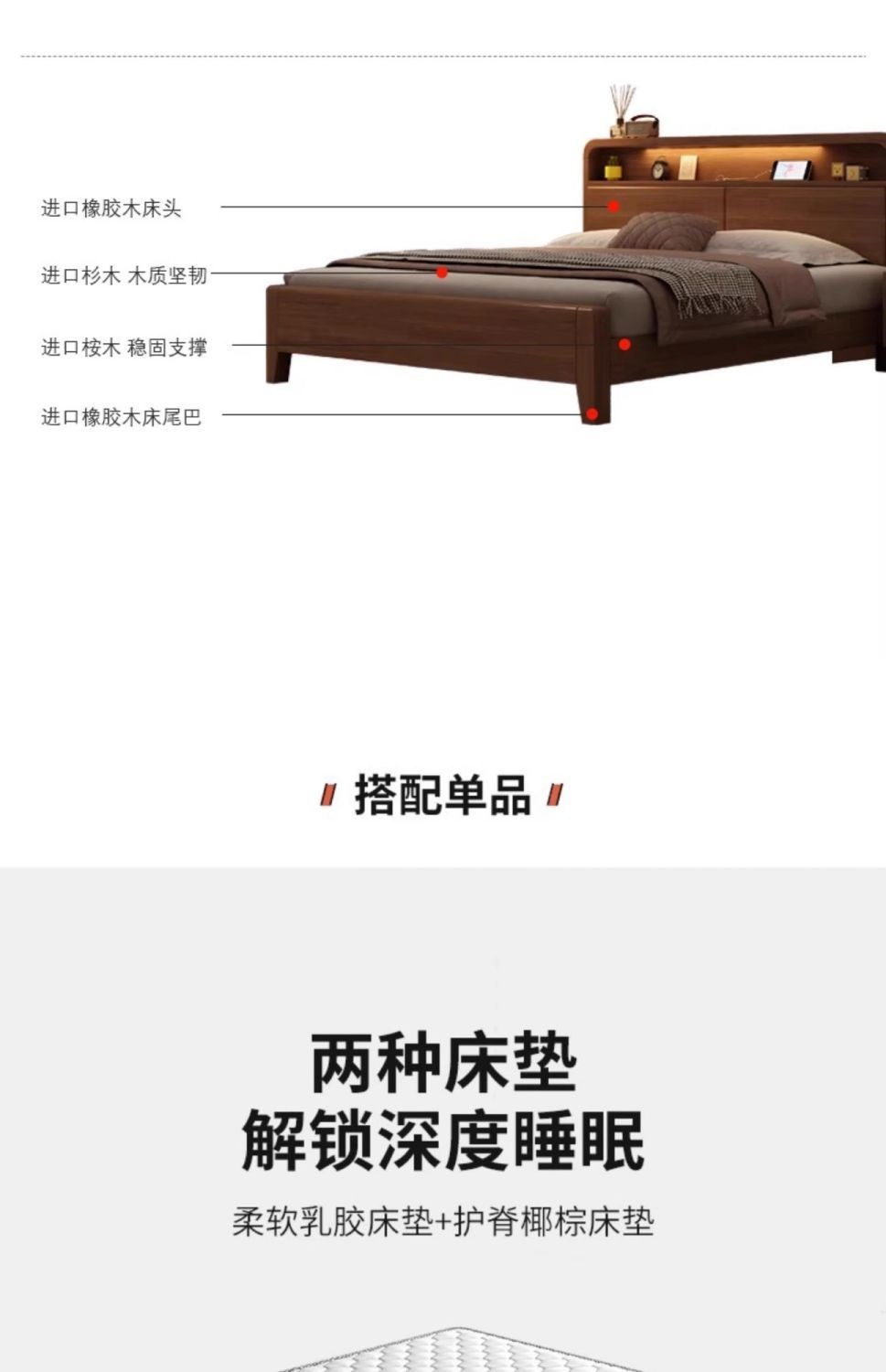 • 하드베드 + 침대협탁 + 라텍스 스프링 매트리스 + 수납장 2개