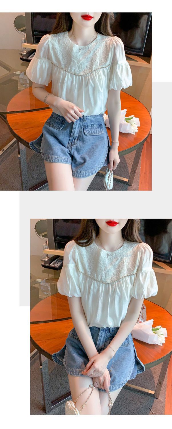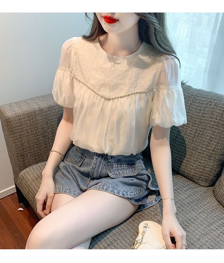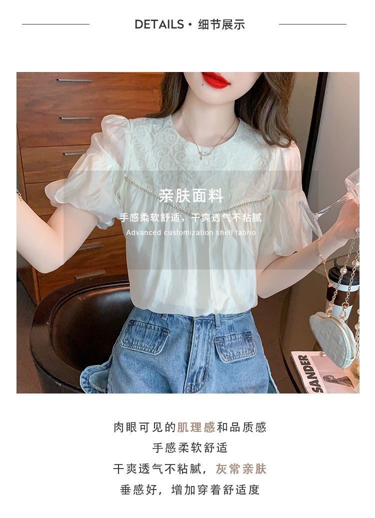 2024년 여름 신상 레트로 퍼프 슬리브 쉬폰 셔츠 여성 디자인 틈새 스타일 외국 스타일 연령 감소 셔츠 탑스토어 가기