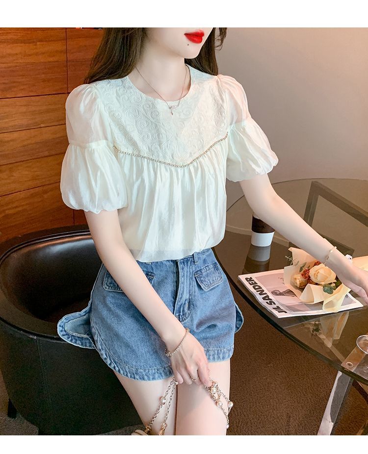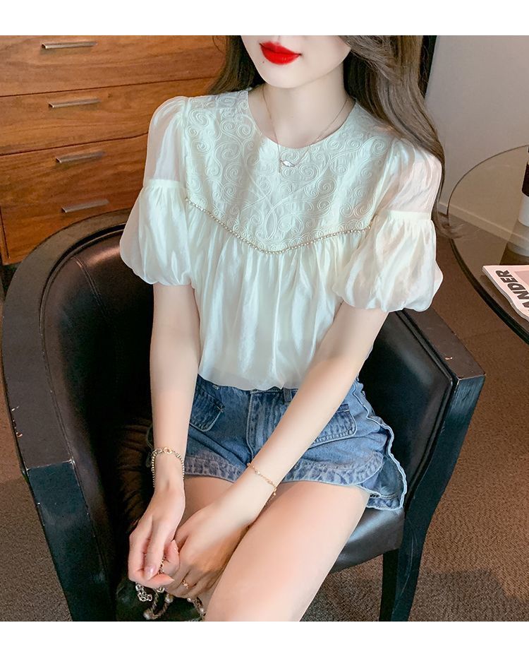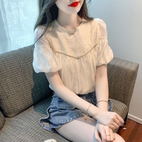 2024년 여름 신상 레트로 퍼프 슬리브 쉬폰 셔츠 여성 디자인 틈새 스타일 외국 스타일 연령 감소 셔츠 탑