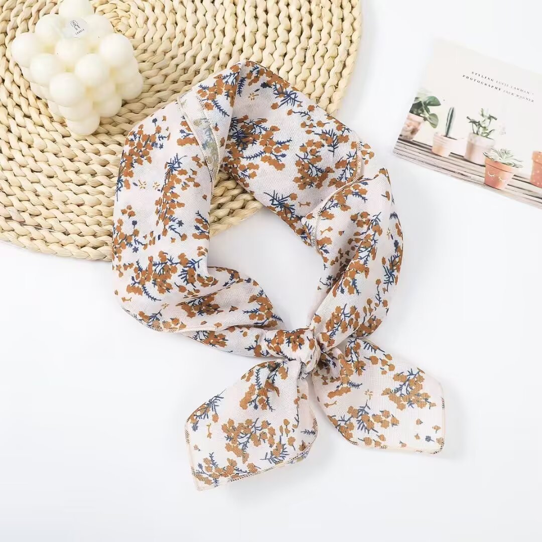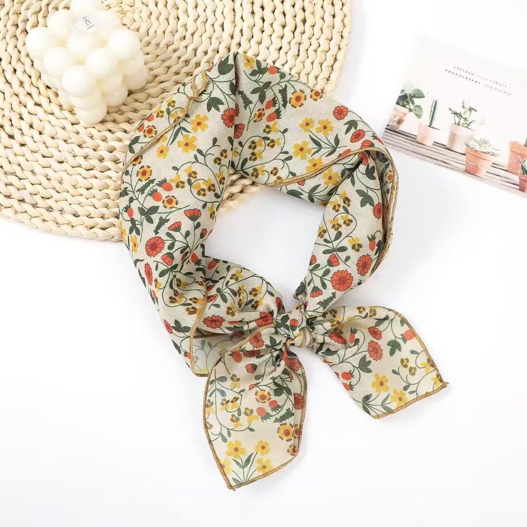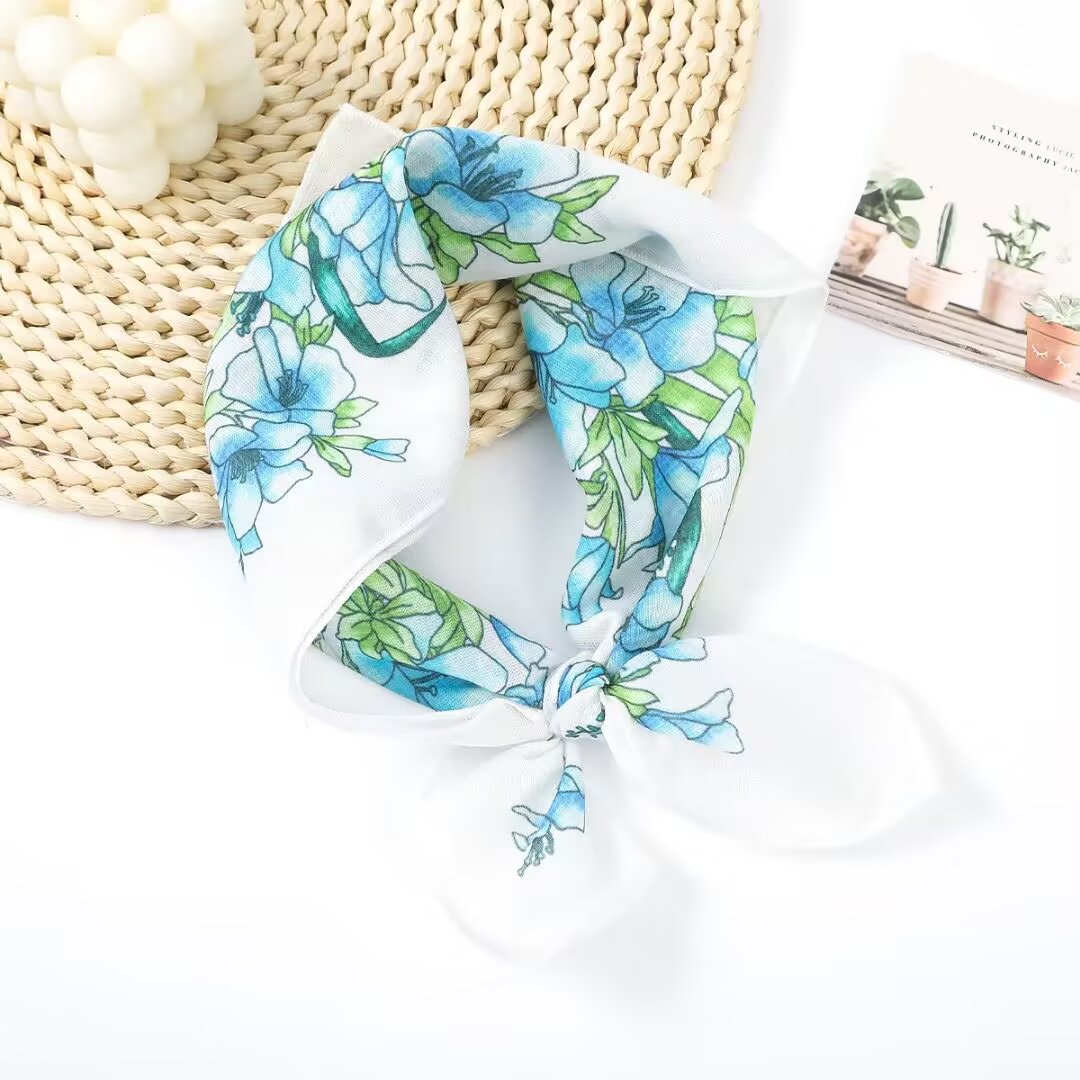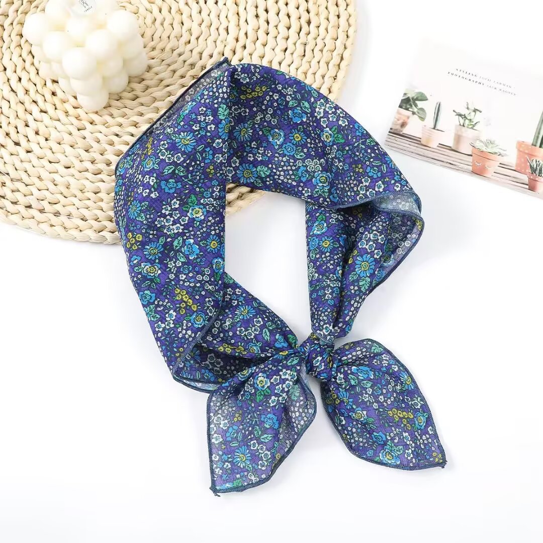 새로운 스타일 58 작은 사각형 스카프 면 및 린넨 실크 스카프 일본식 터번 여성용 다용도 꽃무늬 작은 스카프 신선한 장식 가벼운 스카프