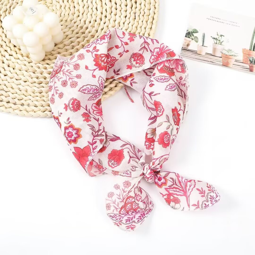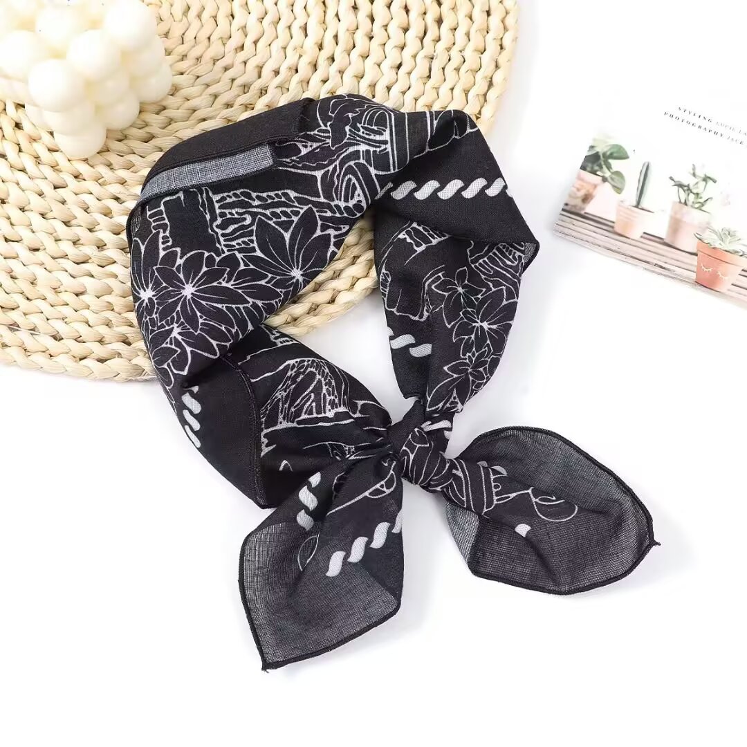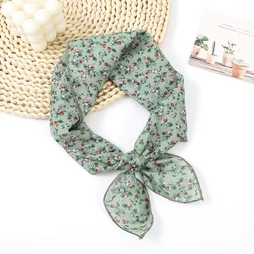 새로운 스타일 58 작은 사각형 스카프 면 및 린넨 실크 스카프 일본식 터번 여성용 다용도 꽃무늬 작은 스카프 신선한 장식 가벼운 스카프