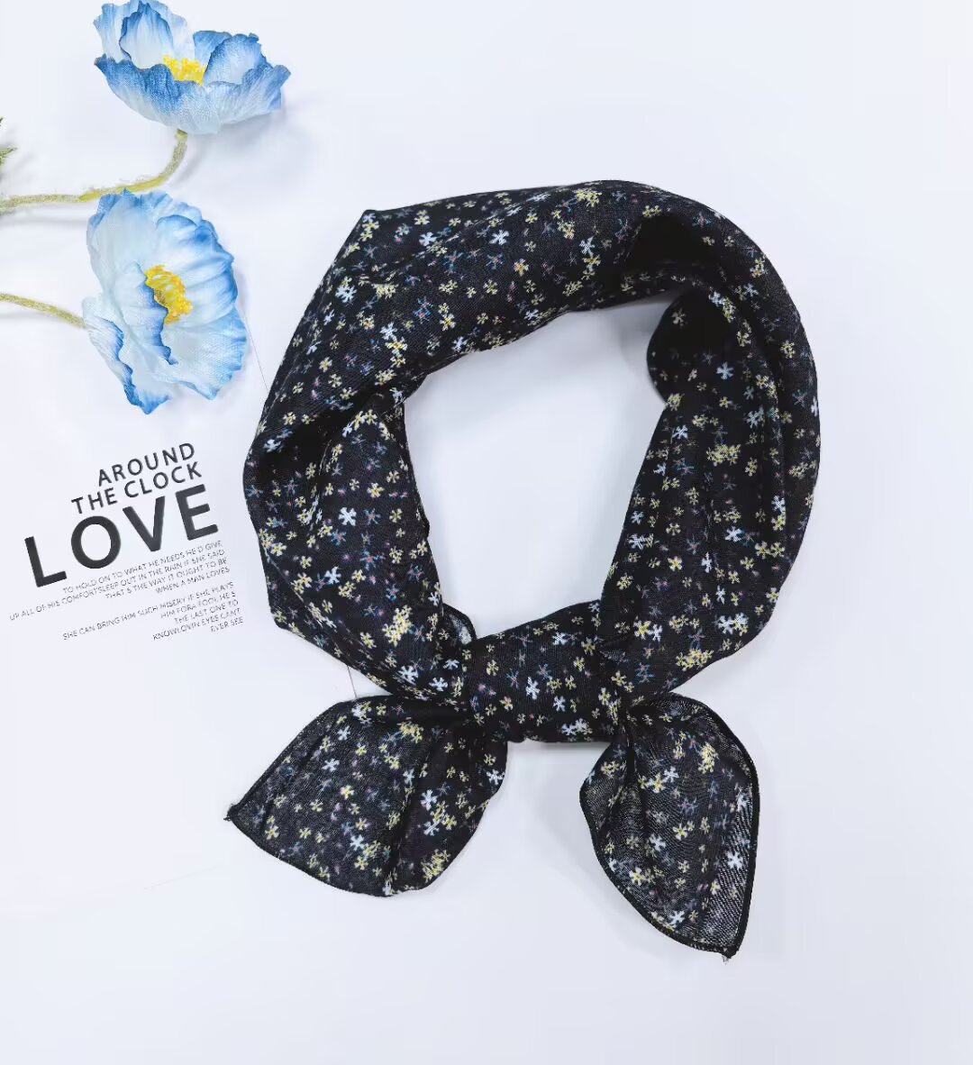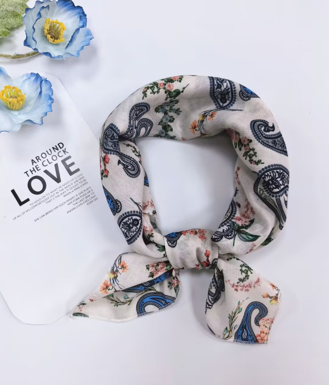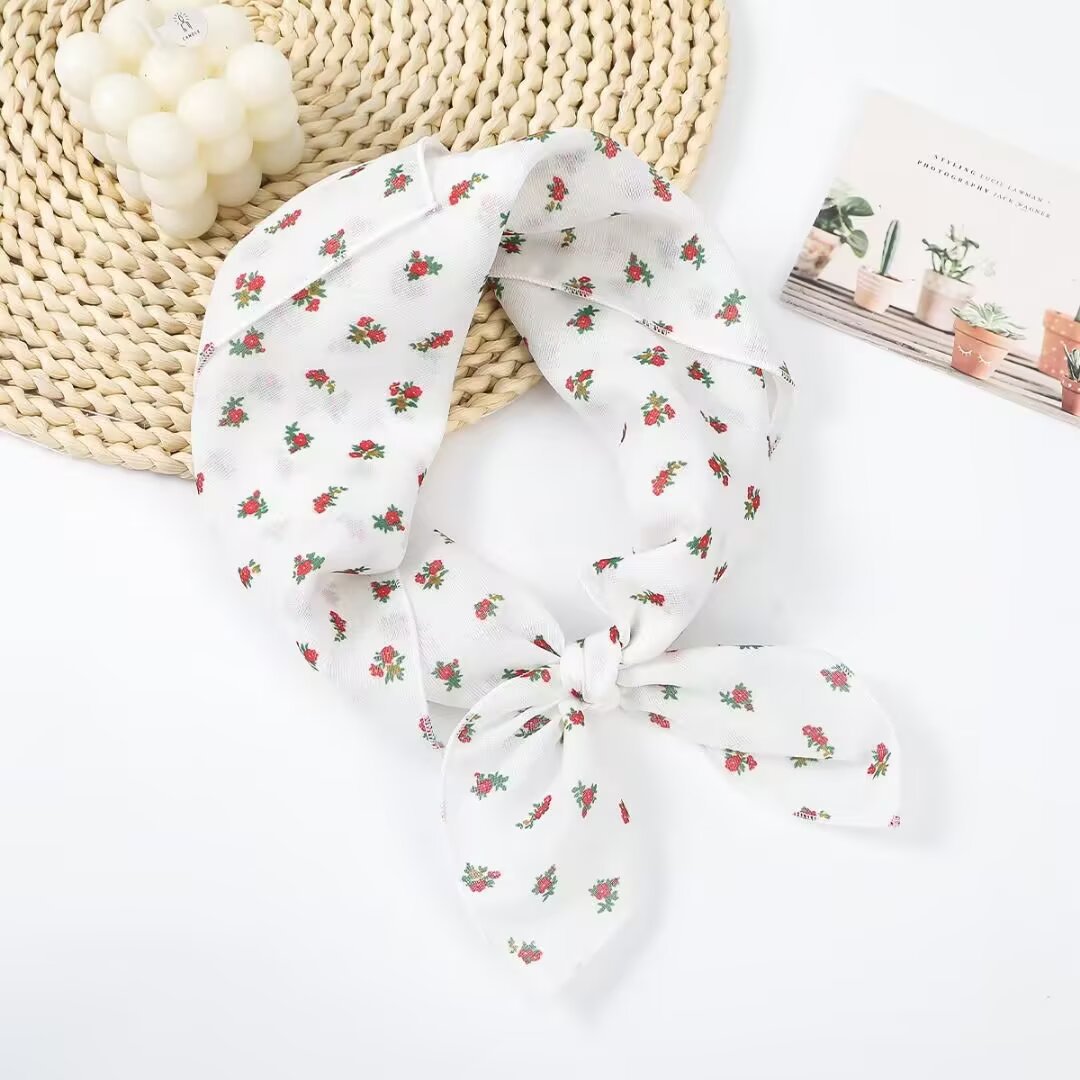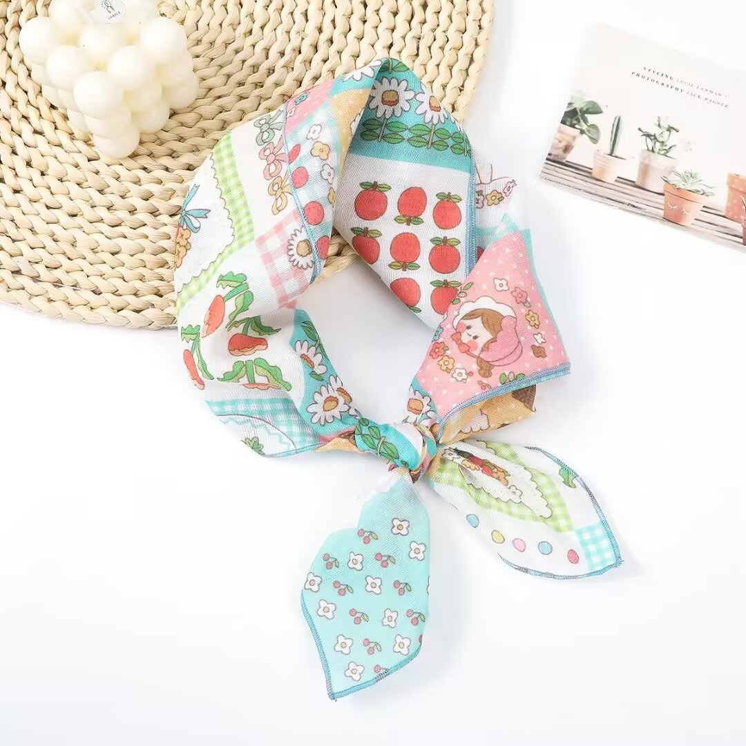 새로운 스타일 58 작은 사각형 스카프 면 및 린넨 실크 스카프 일본식 터번 여성용 다용도 꽃무늬 작은 스카프 신선한 장식 가벼운 스카프