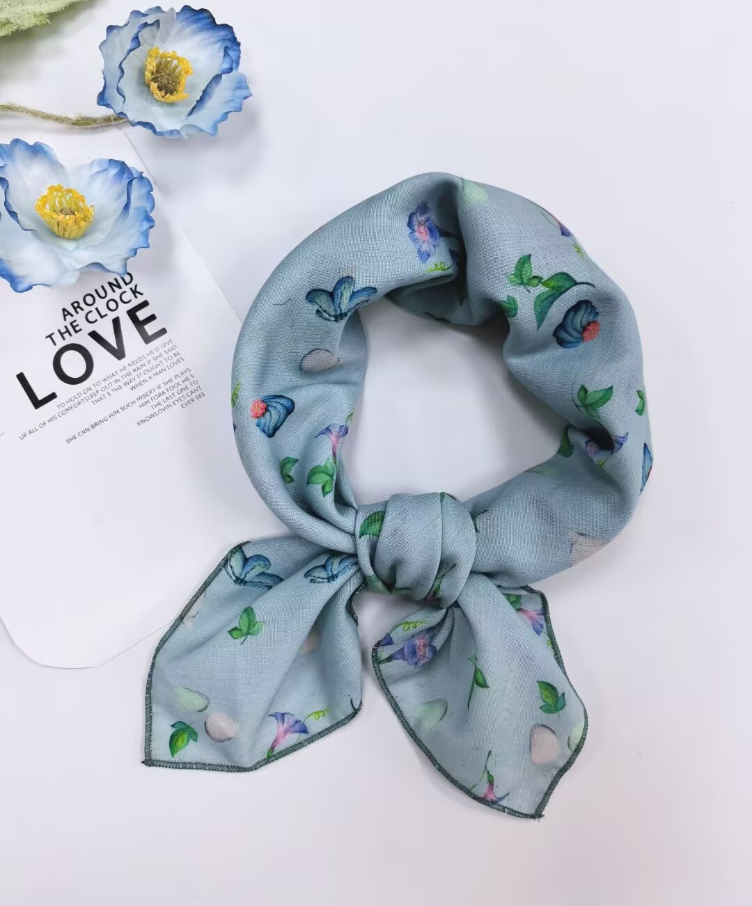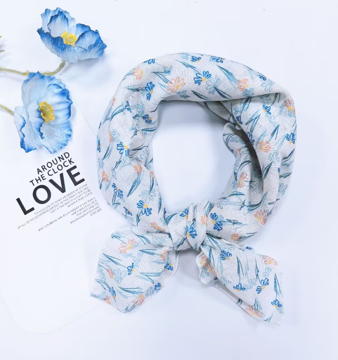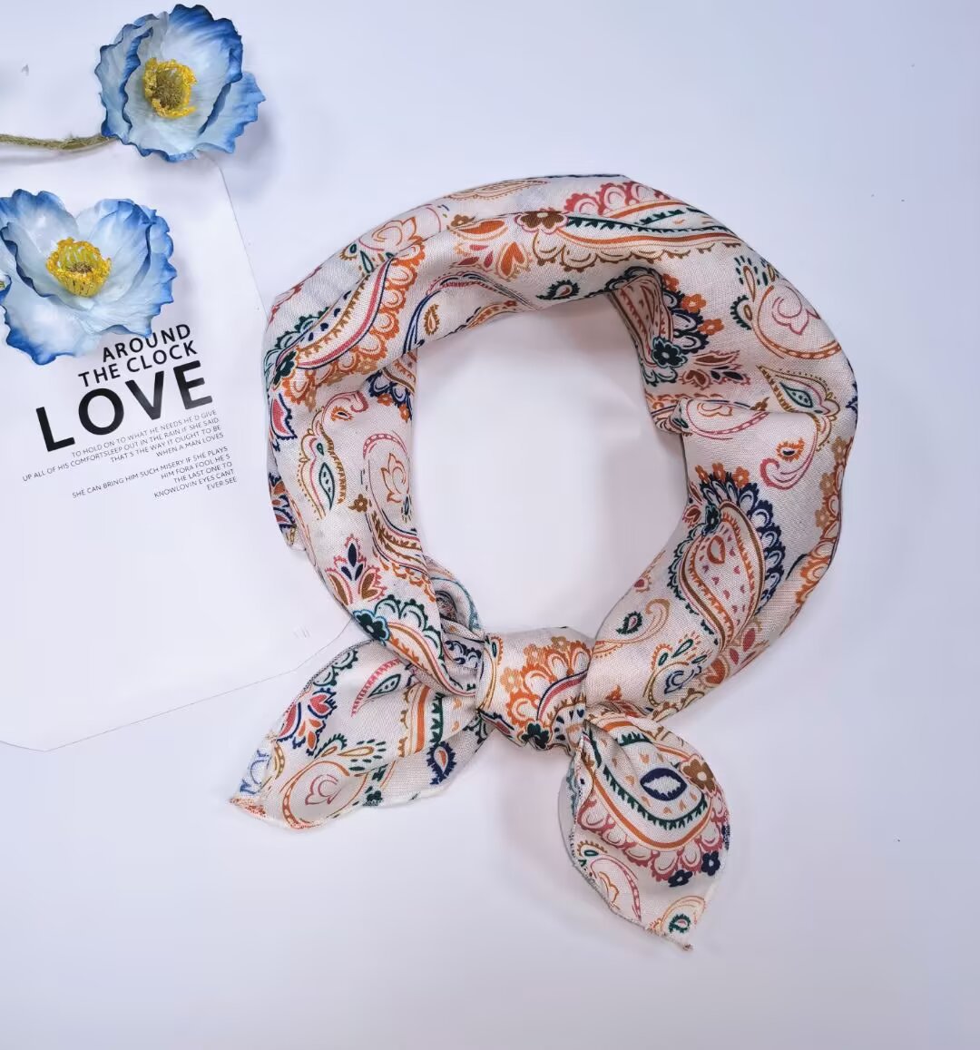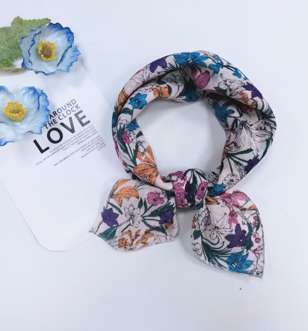 새로운 스타일 58 작은 사각형 스카프 면 및 린넨 실크 스카프 일본식 터번 여성용 다용도 꽃무늬 작은 스카프 신선한 장식 가벼운 스카프스토어 가기