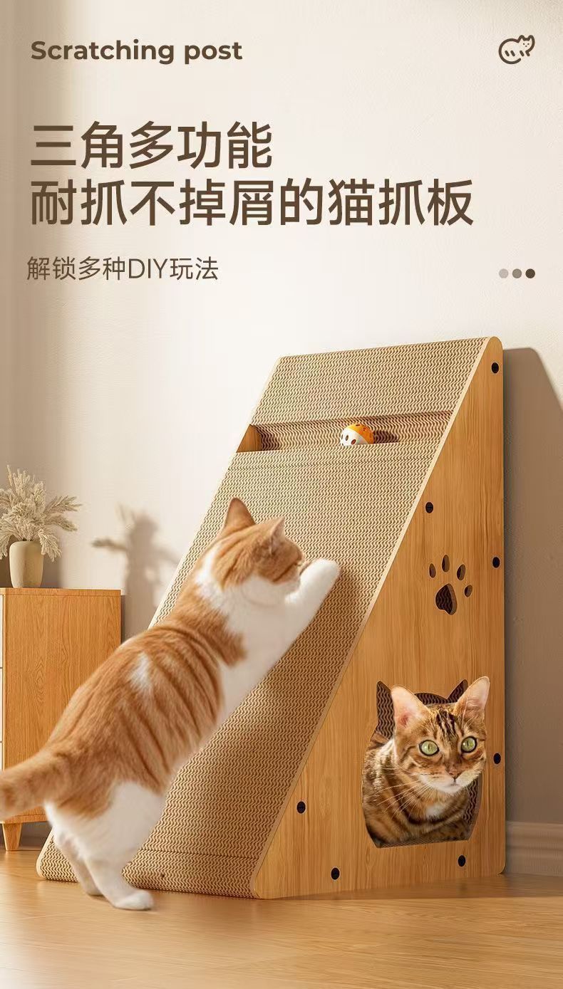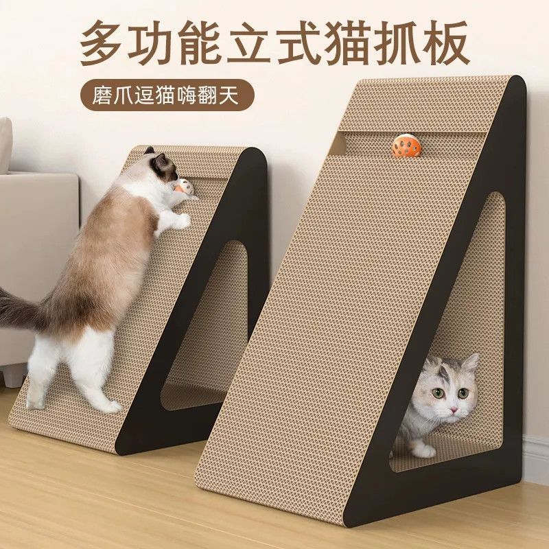 • [골판지형-삼각중형볼없음] 고양이 긁는판-무료 캣닢