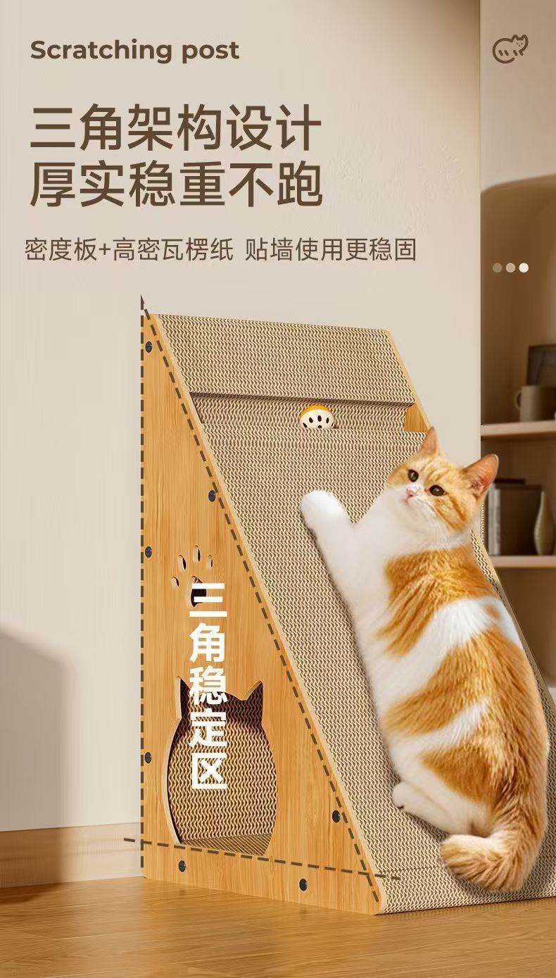 • [골판지형-삼각특대형] 고양이 긁는 기둥-무료 캣닢
