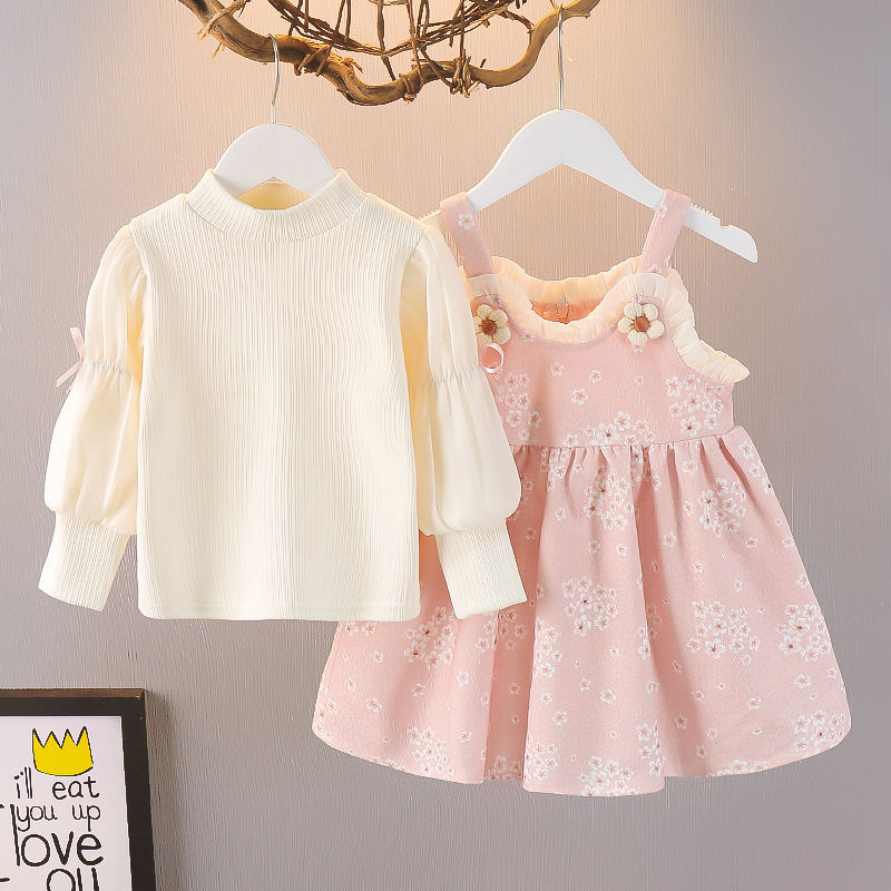 봄과 가을 아동복 2025 새로운 스타일 셔츠 소녀 가을 정장 유행 꽃 드레스 아기 투피스 세트스토어 가기