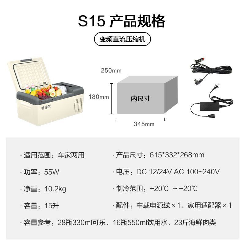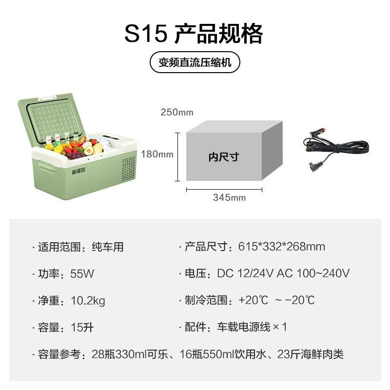 Indel S15S20 자동차 냉장고 자동차 홈 이중 용도 12v24v220v 범용 자동차 소형 냉장고 냉장 및 냉동