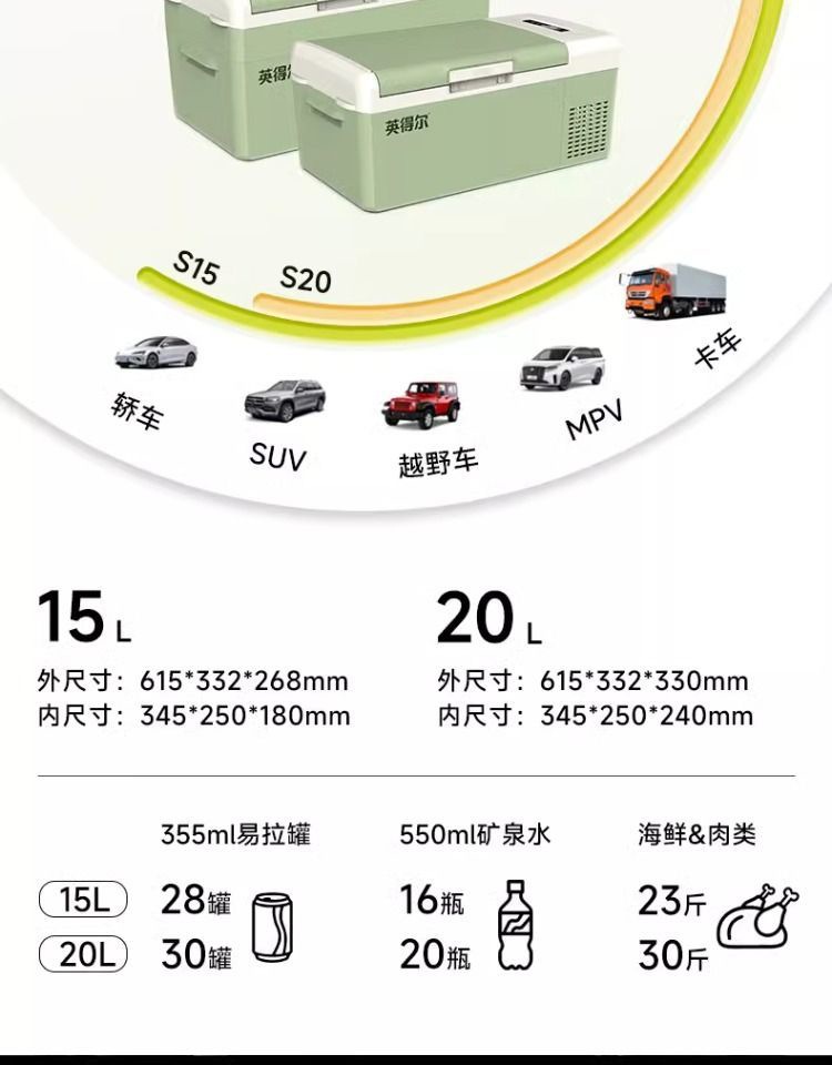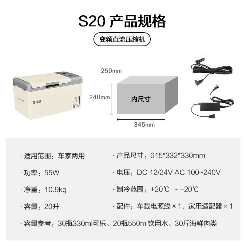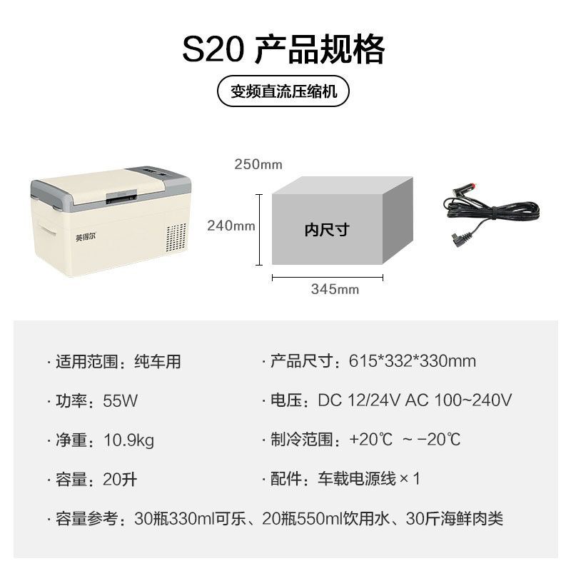 Indel S15S20 자동차 냉장고 자동차 홈 이중 용도 12v24v220v 범용 자동차 소형 냉장고 냉장 및 냉동스토어 가기