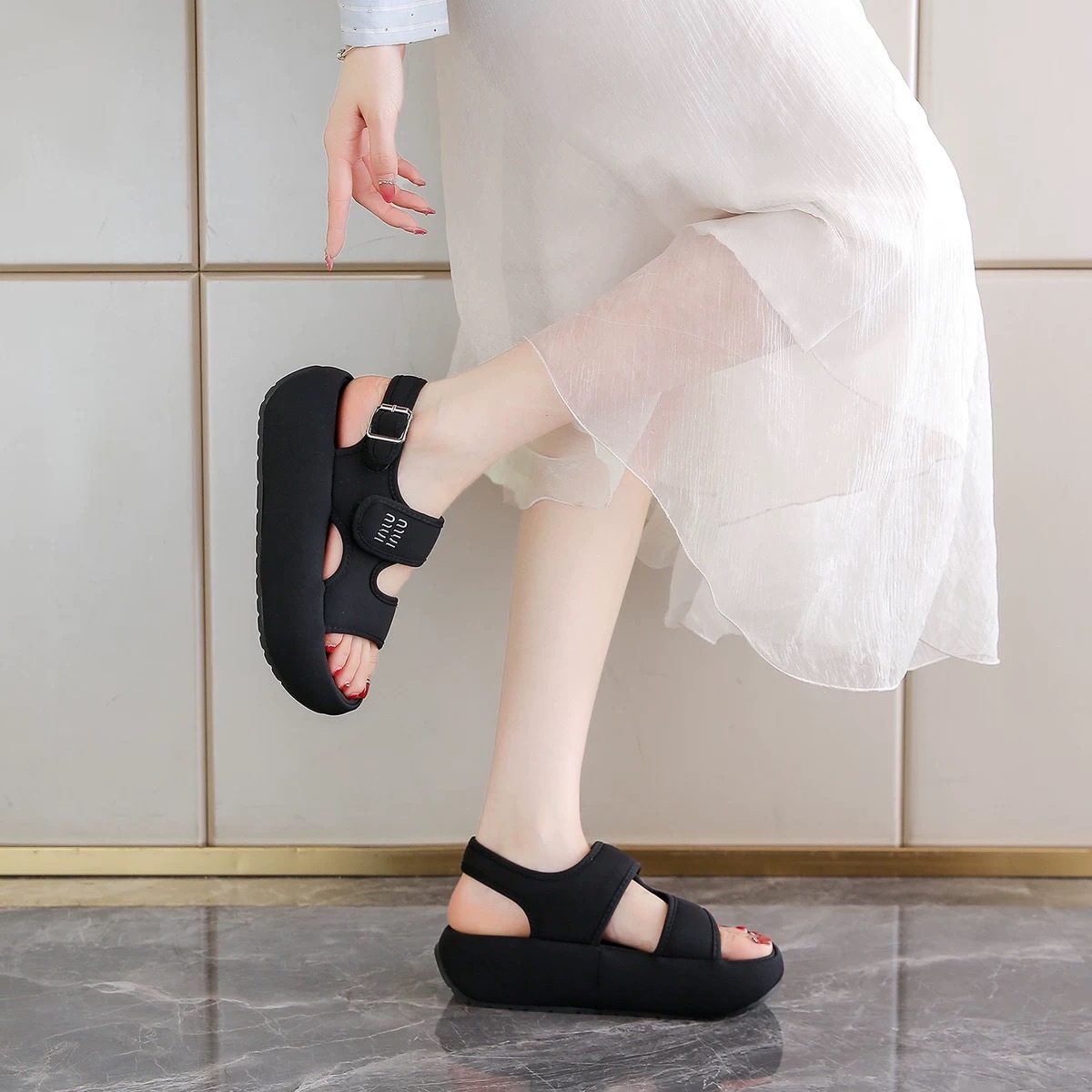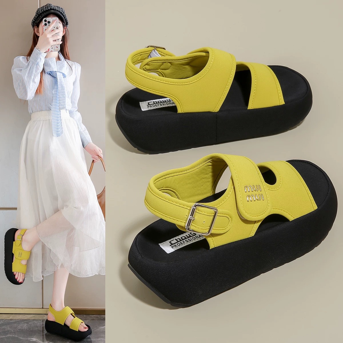 여성용 여름 아우터용 두꺼운 밑창 샌들 2025 새로운 핫 스타일 슈퍼 핫 부드러운 밑창이 피곤하지 않은 여성 캐주얼 비치 로마 신발