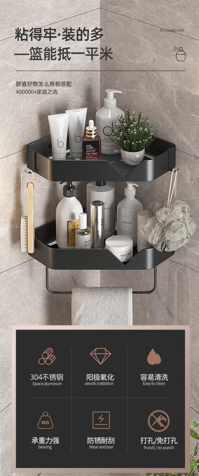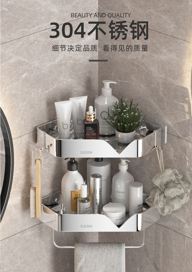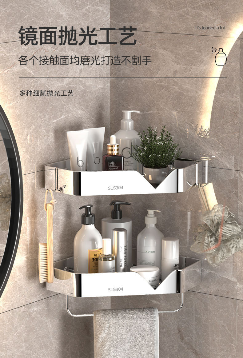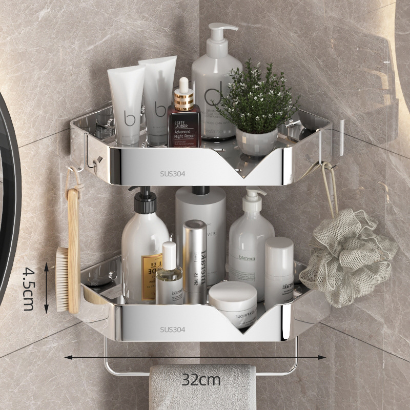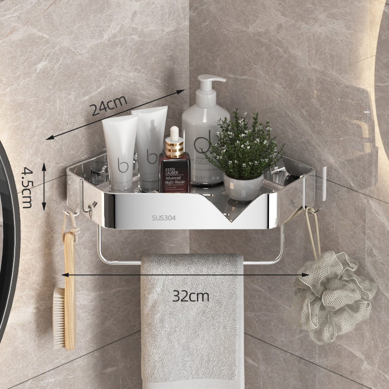 스테인레스 스틸 삼각형 스탠드 주방 욕실 보관함 펀치없는 욕실 코너 호텔 코너 보관함 보관함스토어 가기