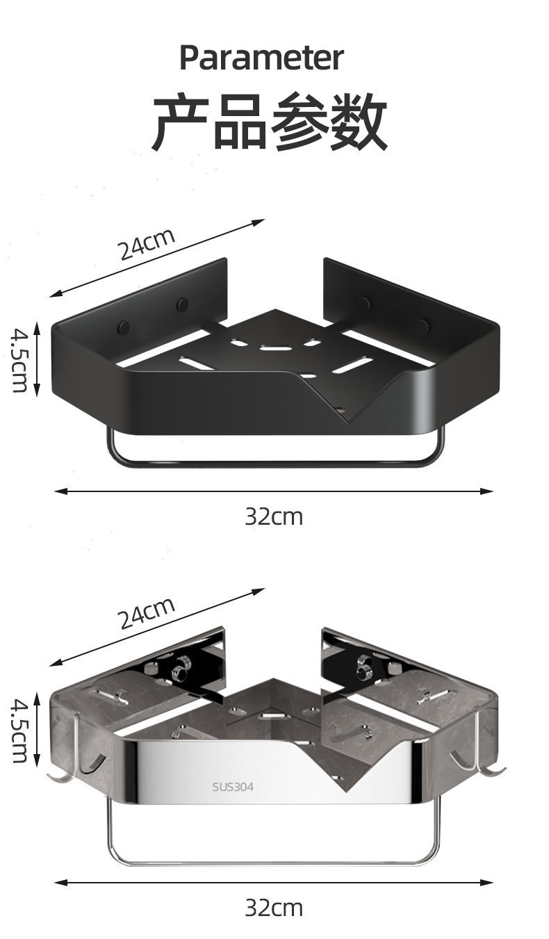 스테인레스 스틸 삼각형 스탠드 주방 욕실 보관함 펀치없는 욕실 코너 호텔 코너 보관함 보관함