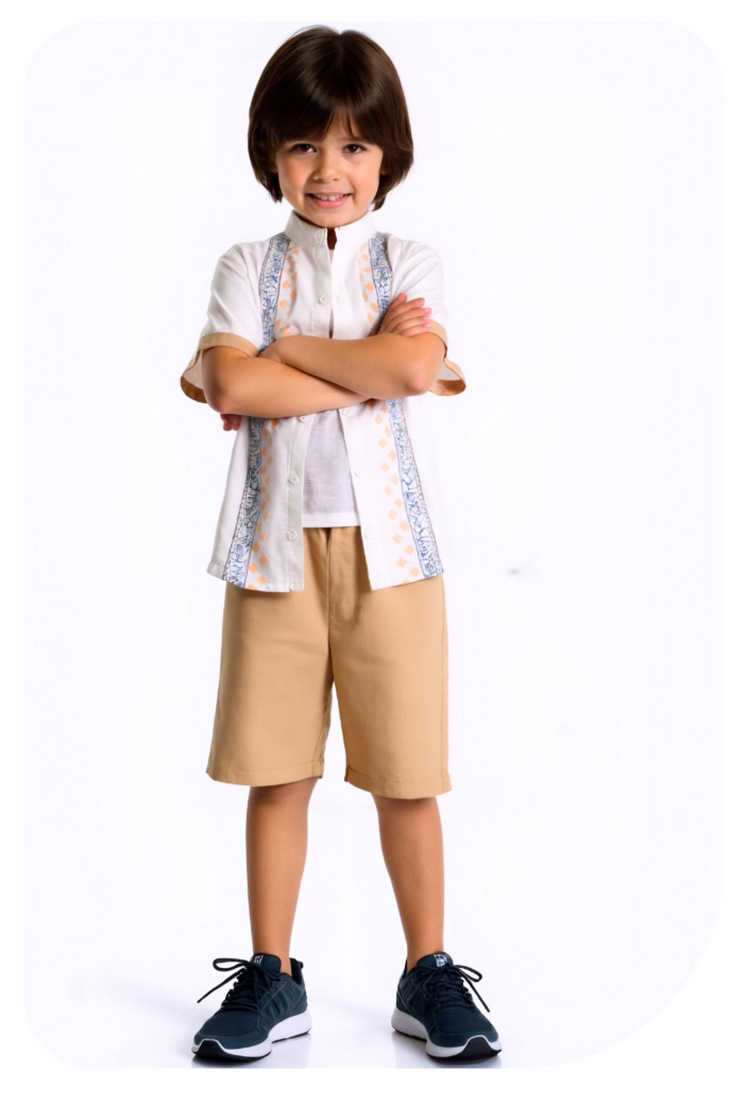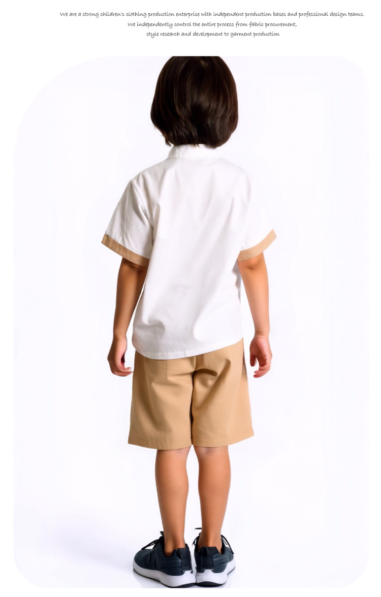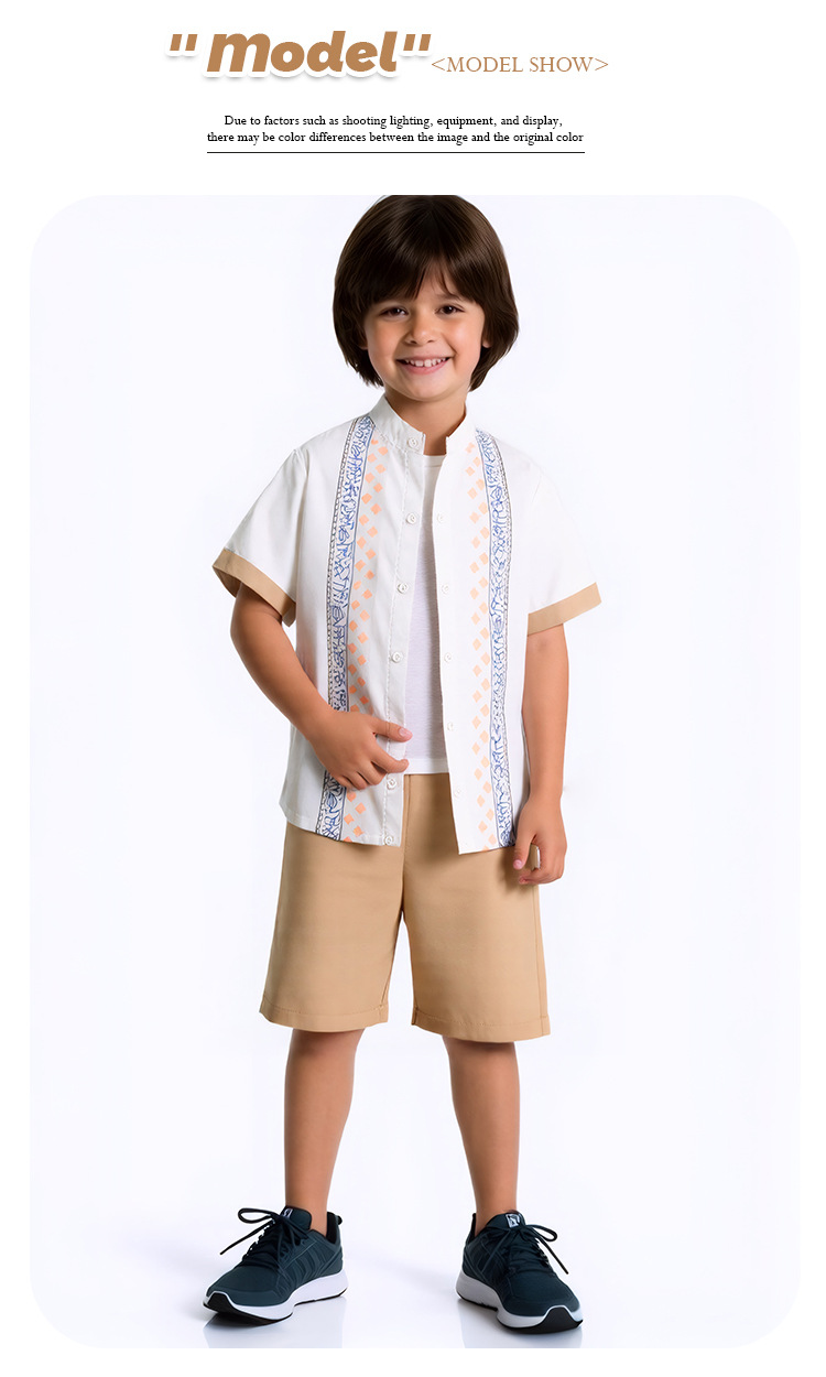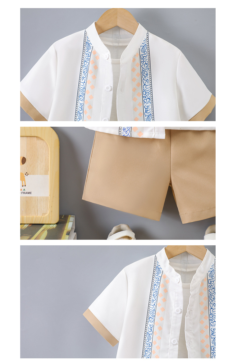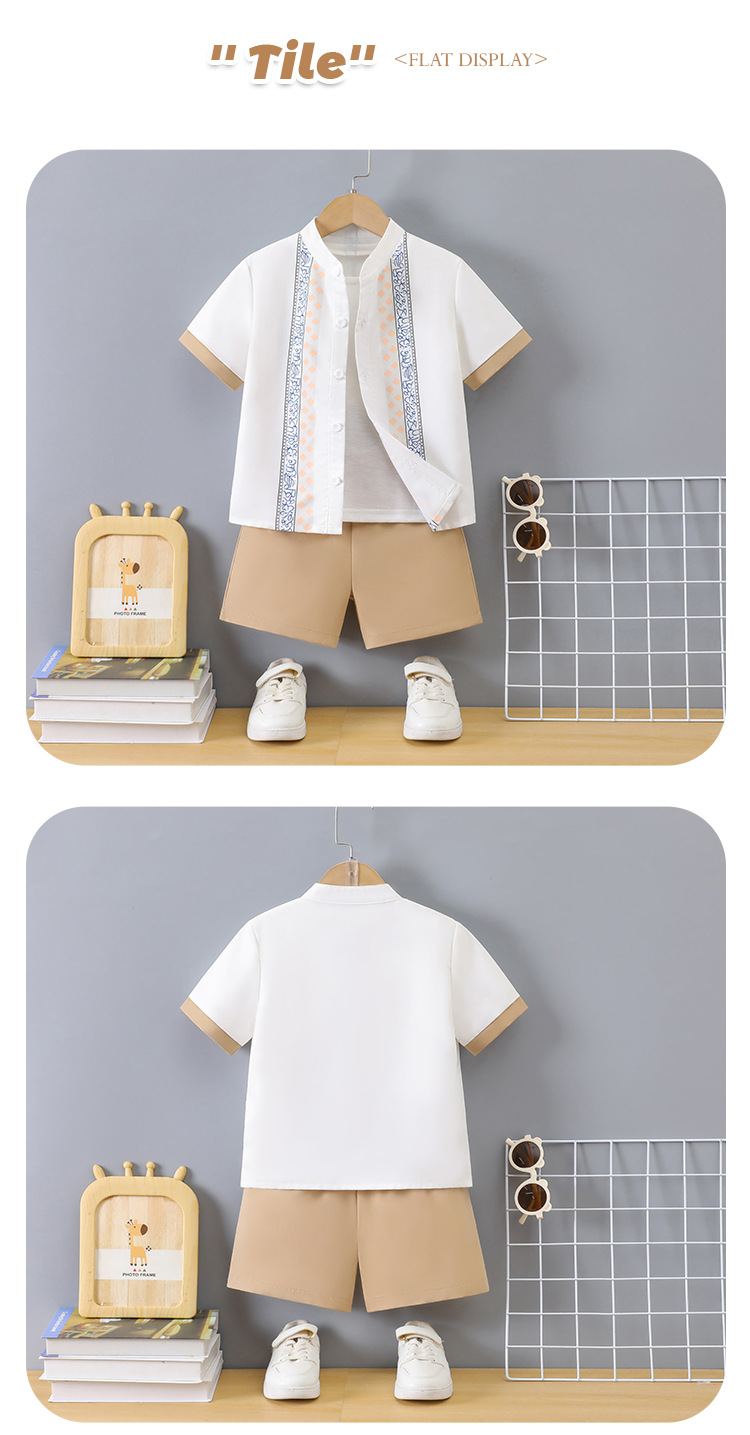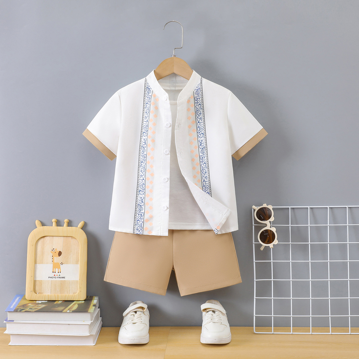 아동 캐주얼 배색 반팔 셔츠 반바지 정장 소년 셔츠 민족 스타일 프린트 반팔 탑 투피스 세트