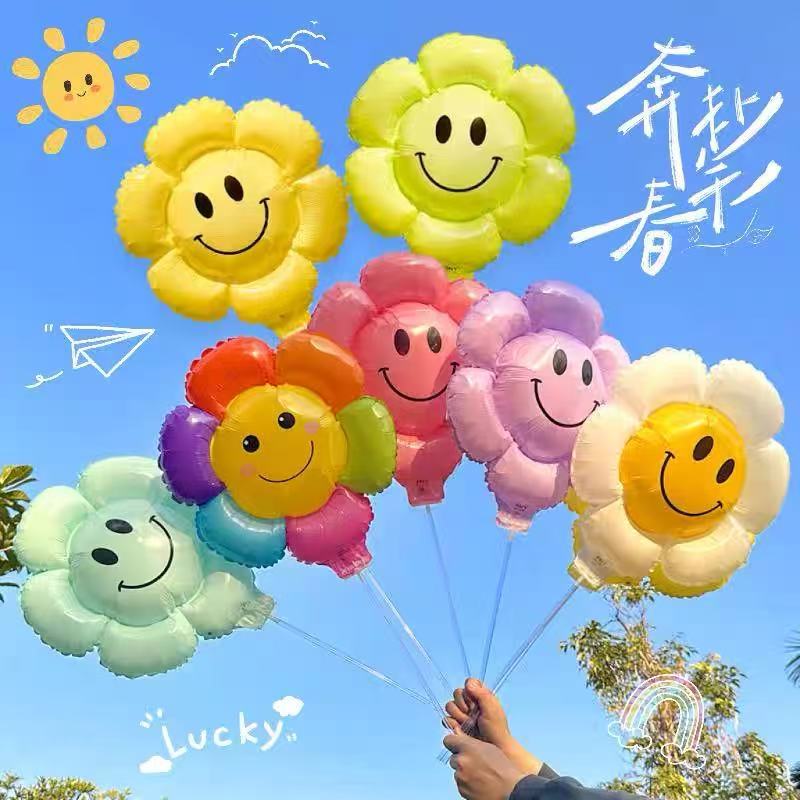 해바라기 데이지 웃는 얼굴 클립 풍선 휴대용 막대 이벤트 사진 장식 학교 스포츠 게임 레이아웃 소품스토어 가기