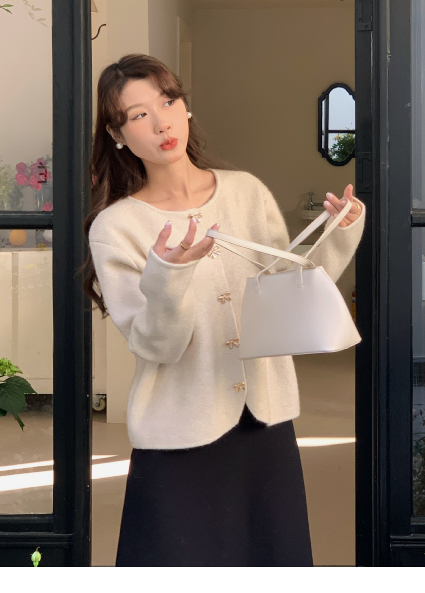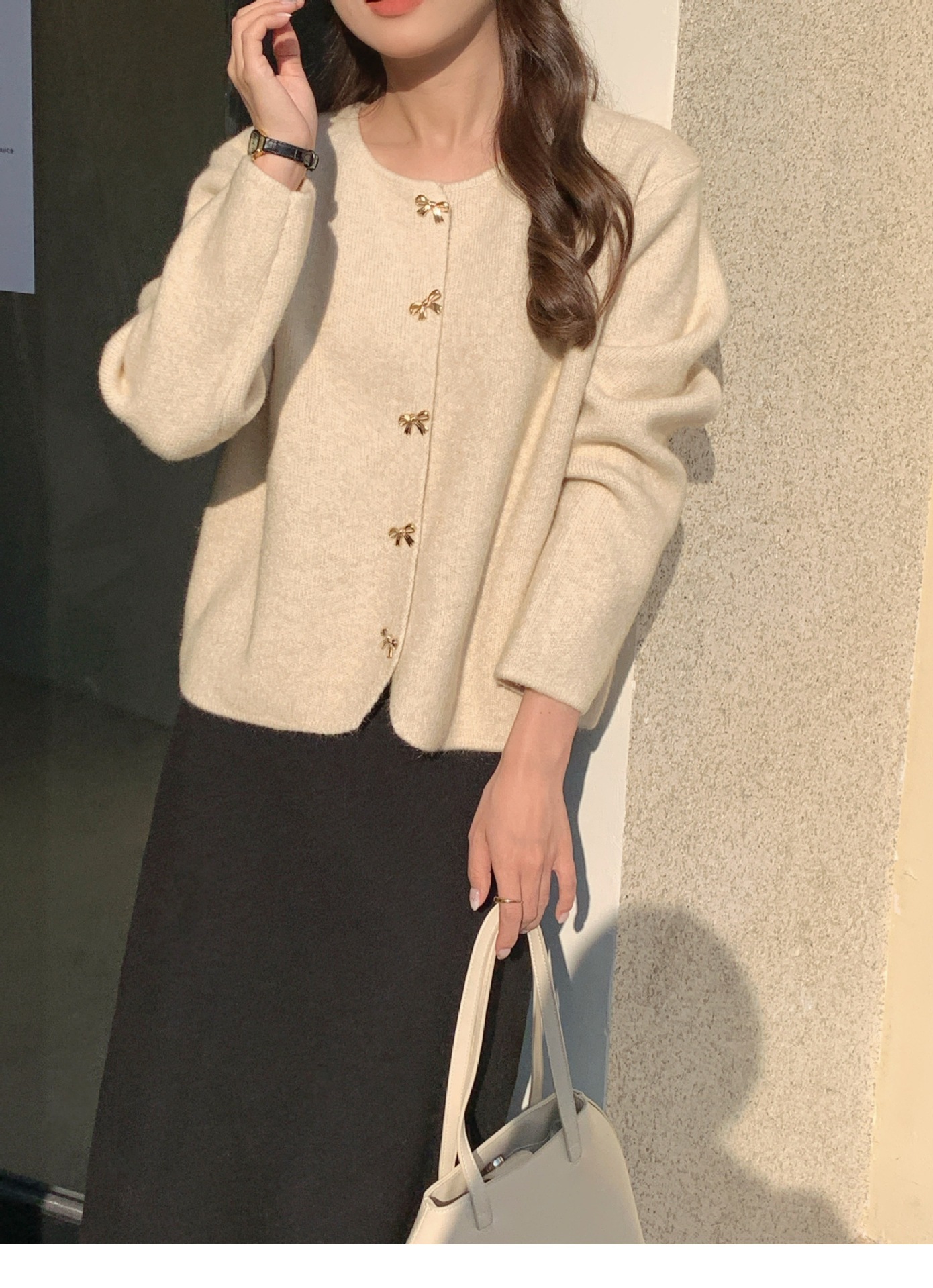 양털 # 가을 겨울 여성을 위한 나비 버클 스타일 스웨터 가디건 새로운 스타일의 부드럽고 슬림한 스웨터 재킷스토어 가기