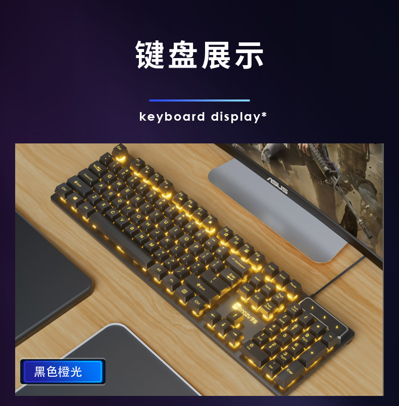 • 진정한 기계적인 느낌 ★ 멋진 조명 - 검정색 주황색 조명 단일 키보드 [클래식 버전] + e스포츠 마우스 - 104키 없음