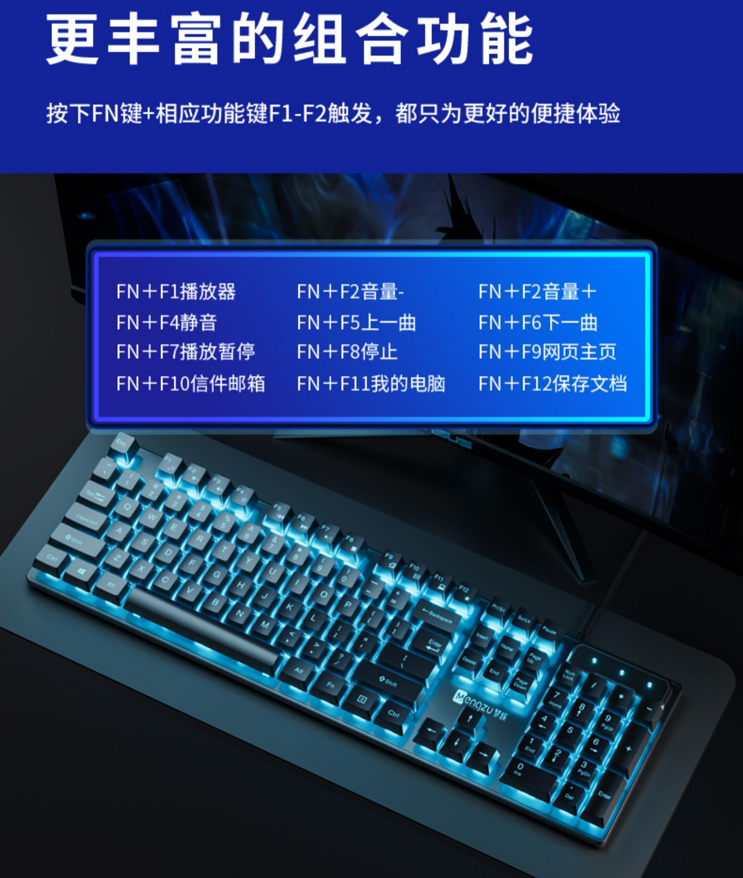 • 진정한 기계적인 느낌 ★ 멋진 조명 - 블랙 블루레이 싱글 키보드 [클래식 에디션] + e스포츠 마우스 - No - 104키