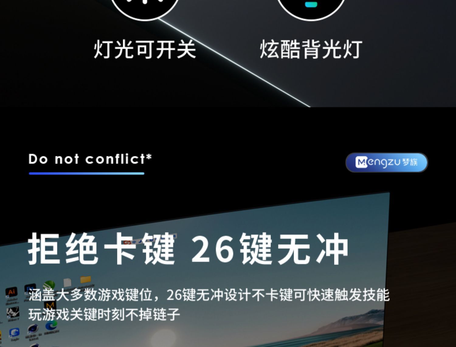 • 진정한 기계적인 느낌 ★ 멋진 조명 - 검정색 무광 단일 키보드 [클래식 버전] + e스포츠 마우스 + 게임용 헤드셋 - 아니요 - 104키