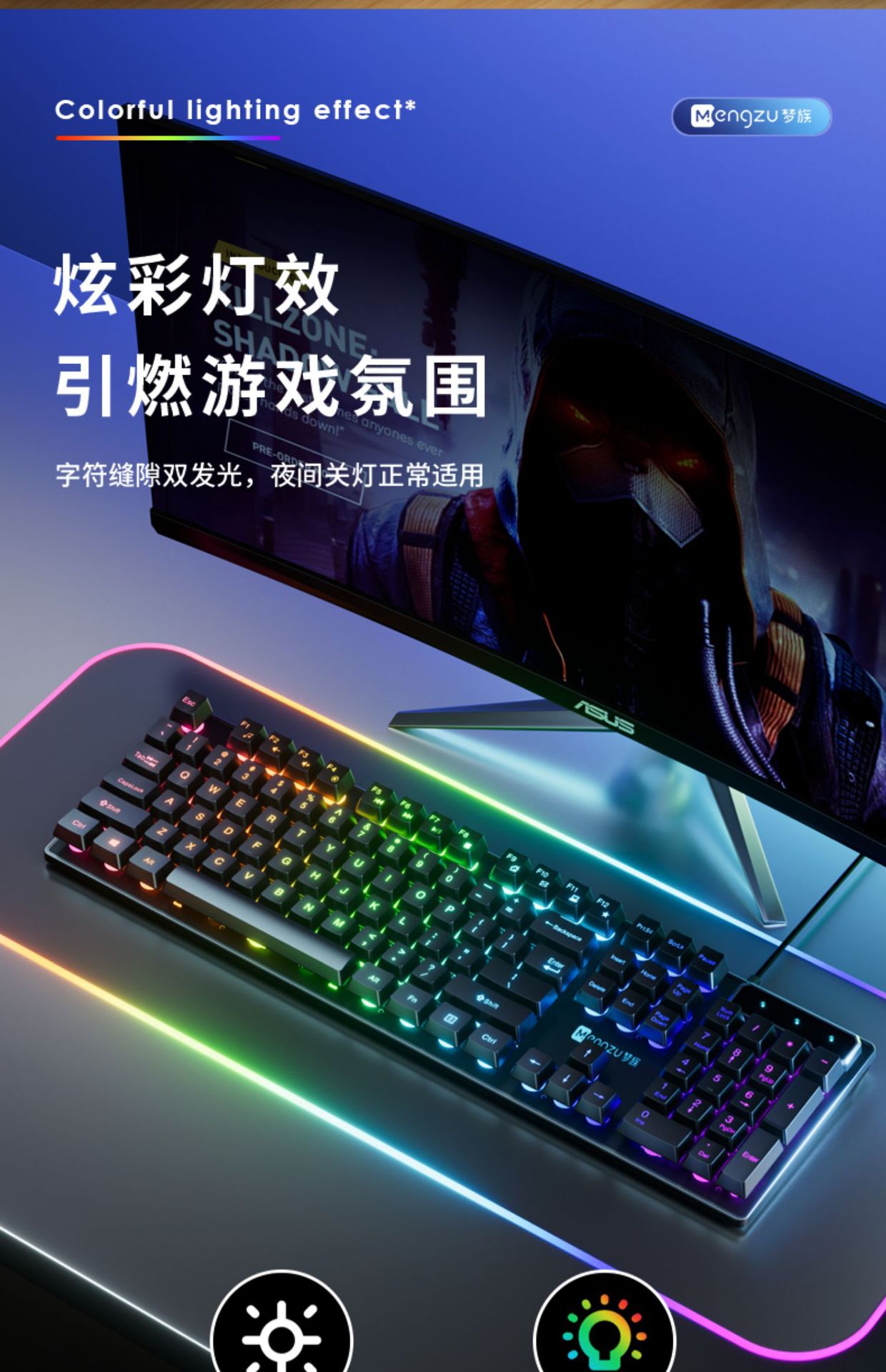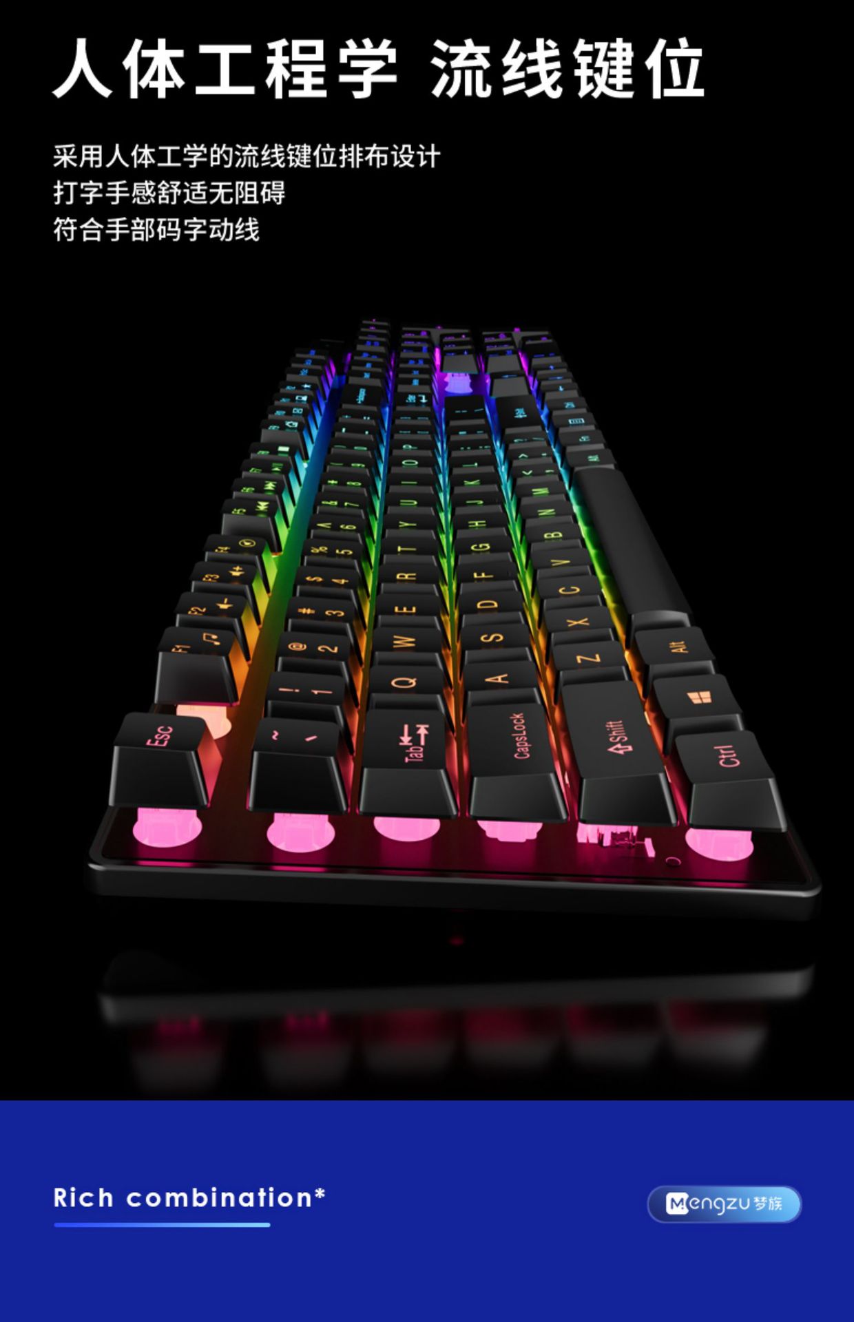• 진정한 기계적인 느낌 ★ 멋진 조명 - 검정색 혼합 조명 단일 키보드 [클래식 버전] - No - 104 키