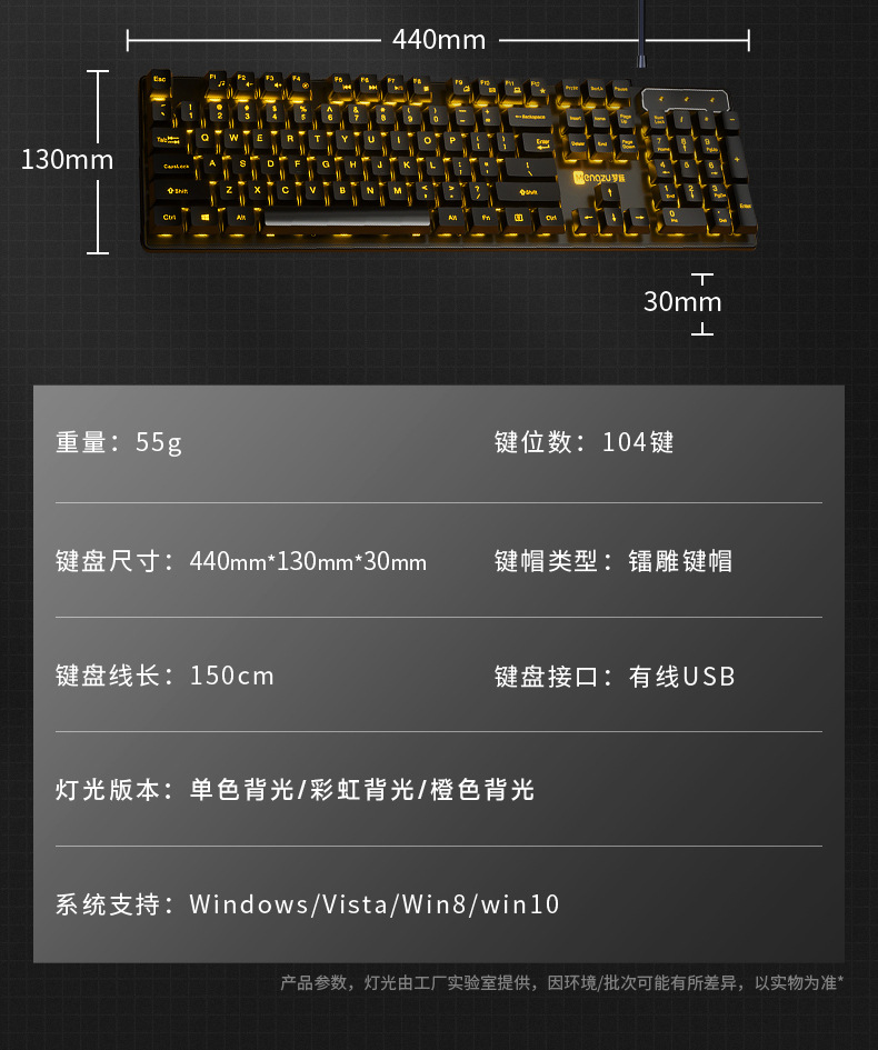 • 진정한 기계적인 느낌 ★ 멋진 조명 - 검정색 주황색 조명 단일 키보드 [클래식 버전] - 없음 - 104 키