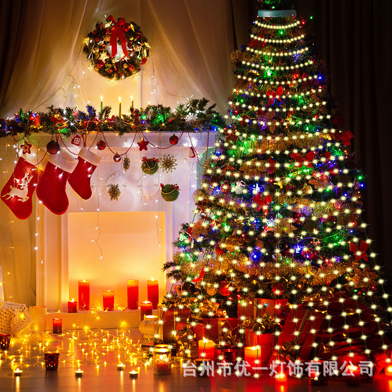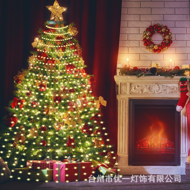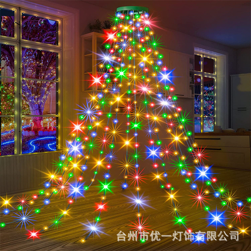 아마존의 새로운 LED 링 트리 탑 라이트 크리스마스 트리 장식 조명 크리스마스 야드 장식 폭포 조명 문자열