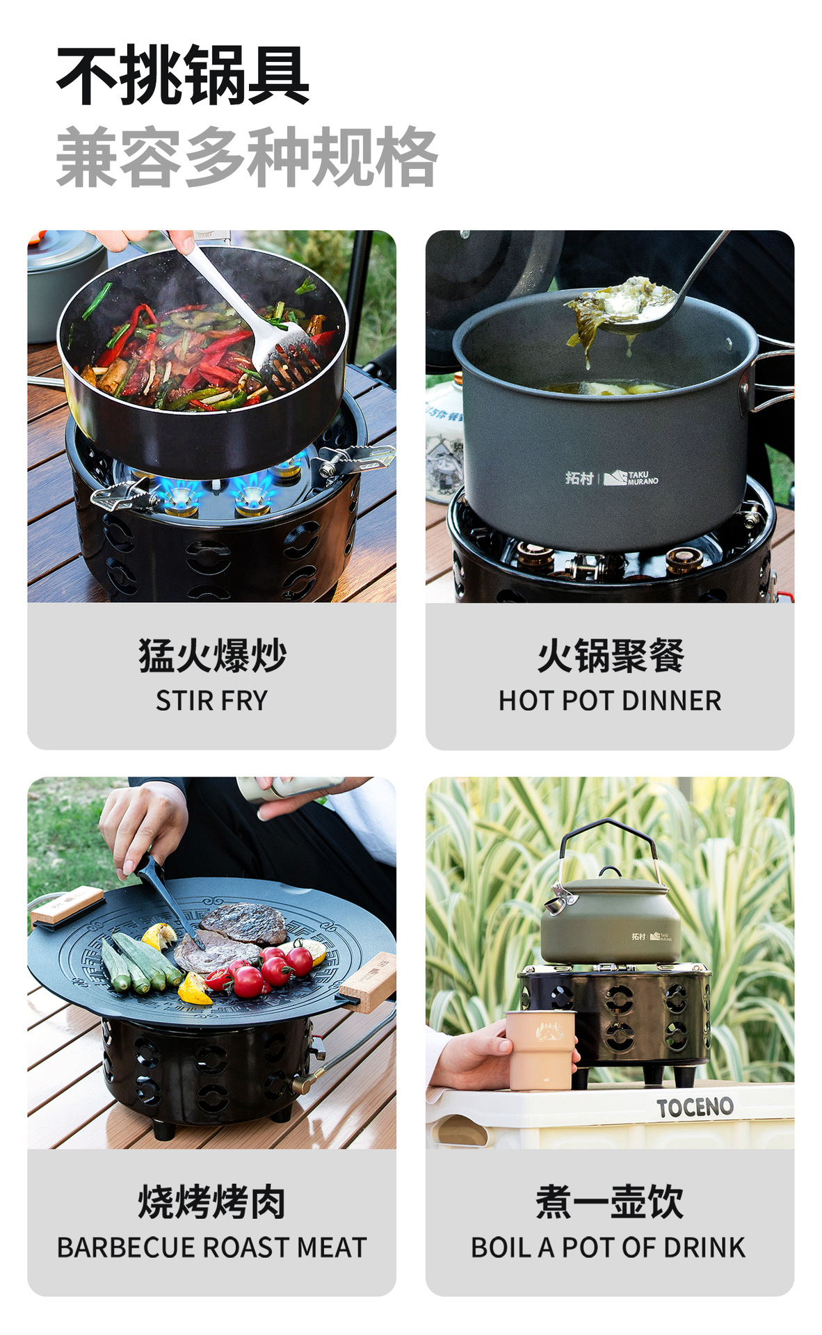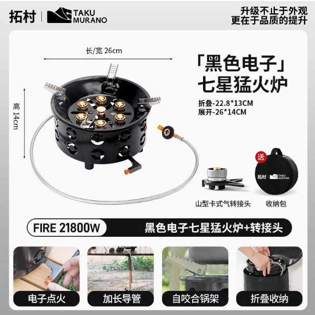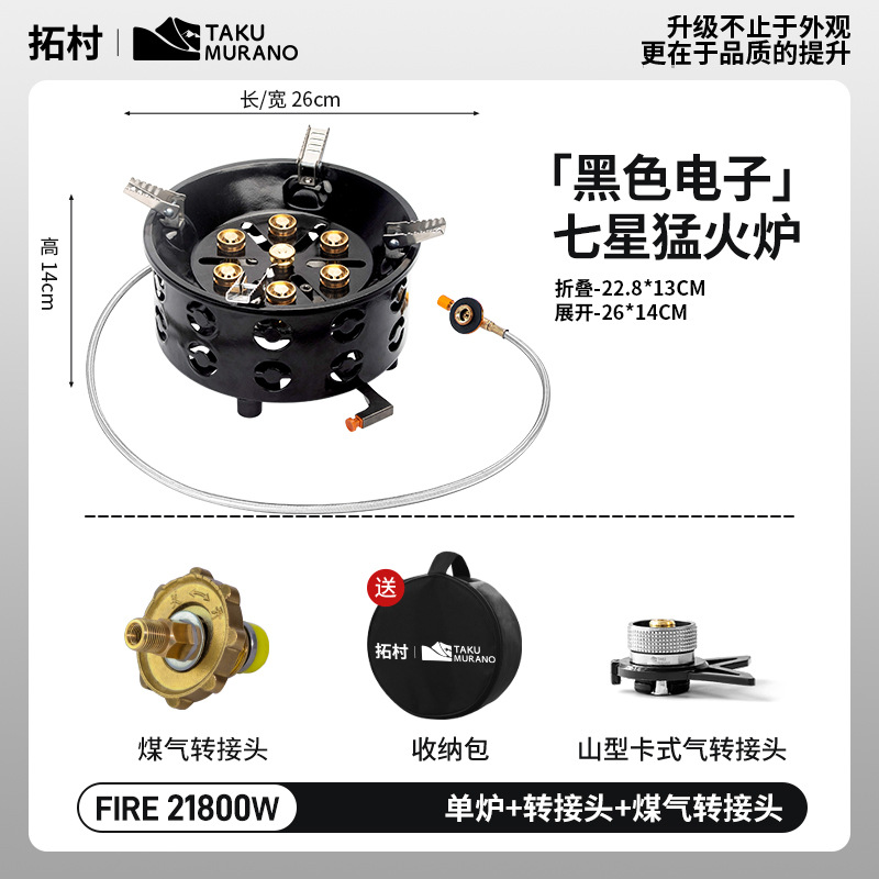 ♔ Tocun 스탠드 포함 검은색 7성 강력한 스토브 야외 가스 스토브 가정용 주변 스토브 차 요리 바베큐 스토브 실내스토어 가기