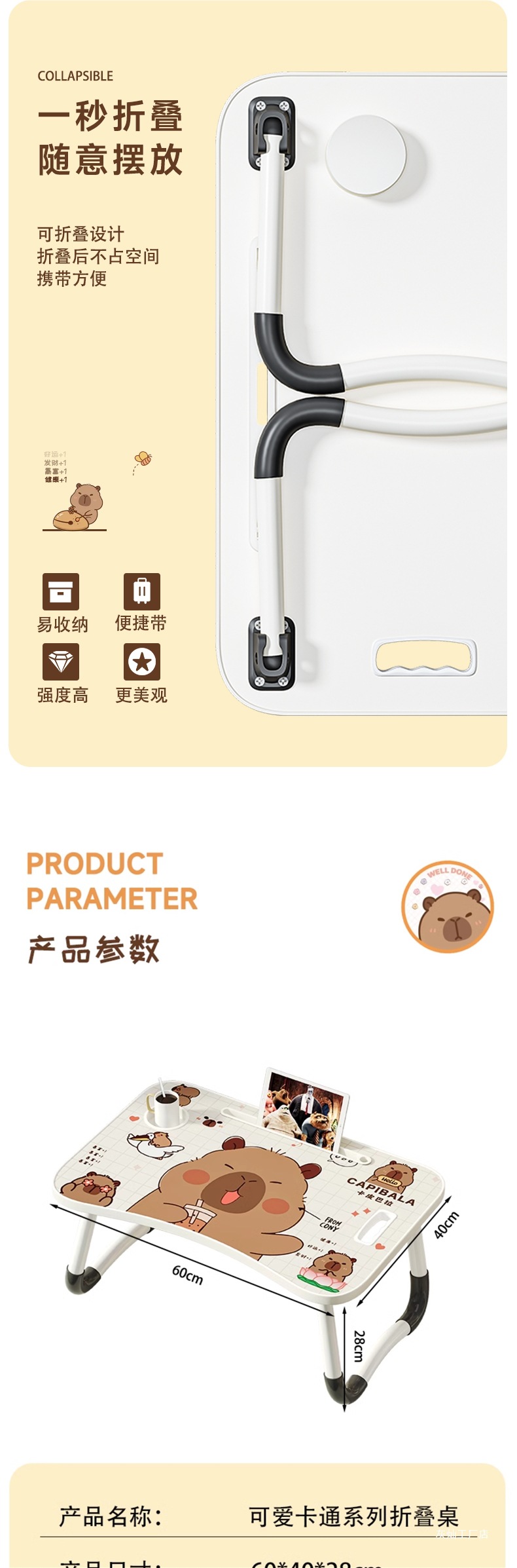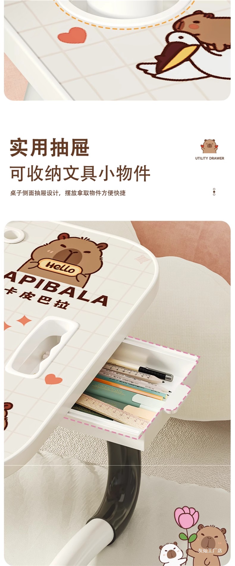 • 스페이스 래빗 [안정적인 테이블 다리] 서랍 + 책장 + 컵홀더 + 카드슬롯