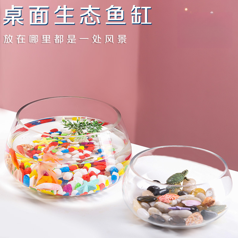 새로운 물고기 탱크 유리 라운드 책상 pothos 수경 가정용 작은 물고기 크리 에이 티브 투명 작은 미니 테이블 Yiling