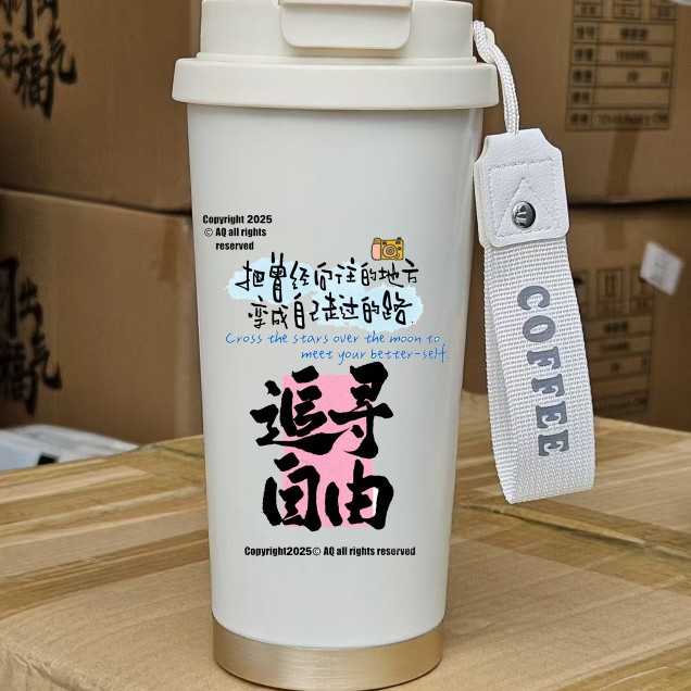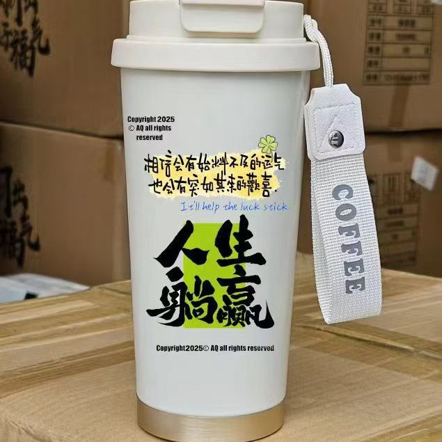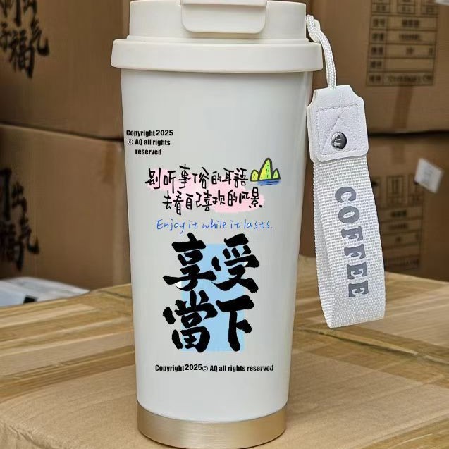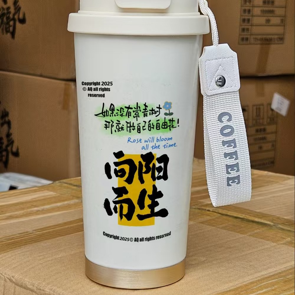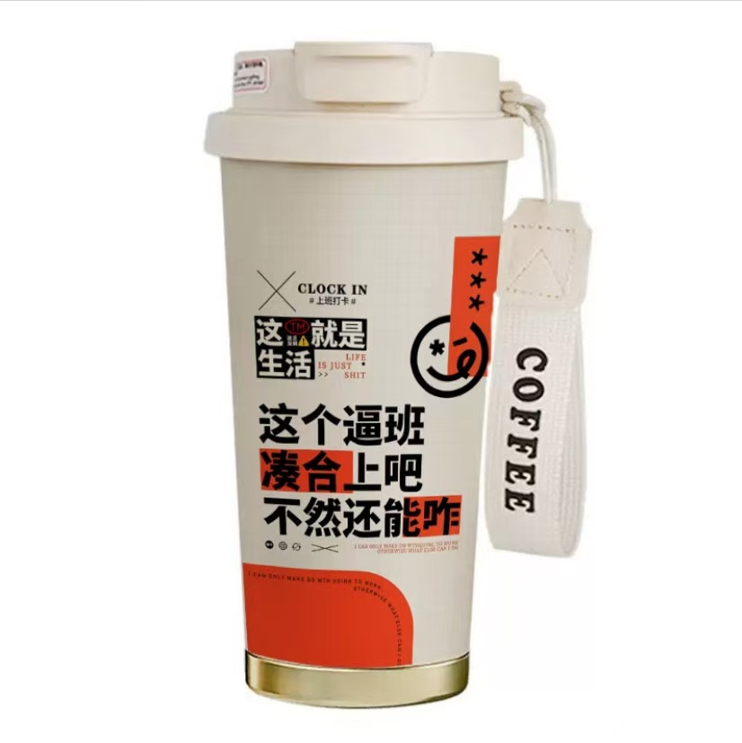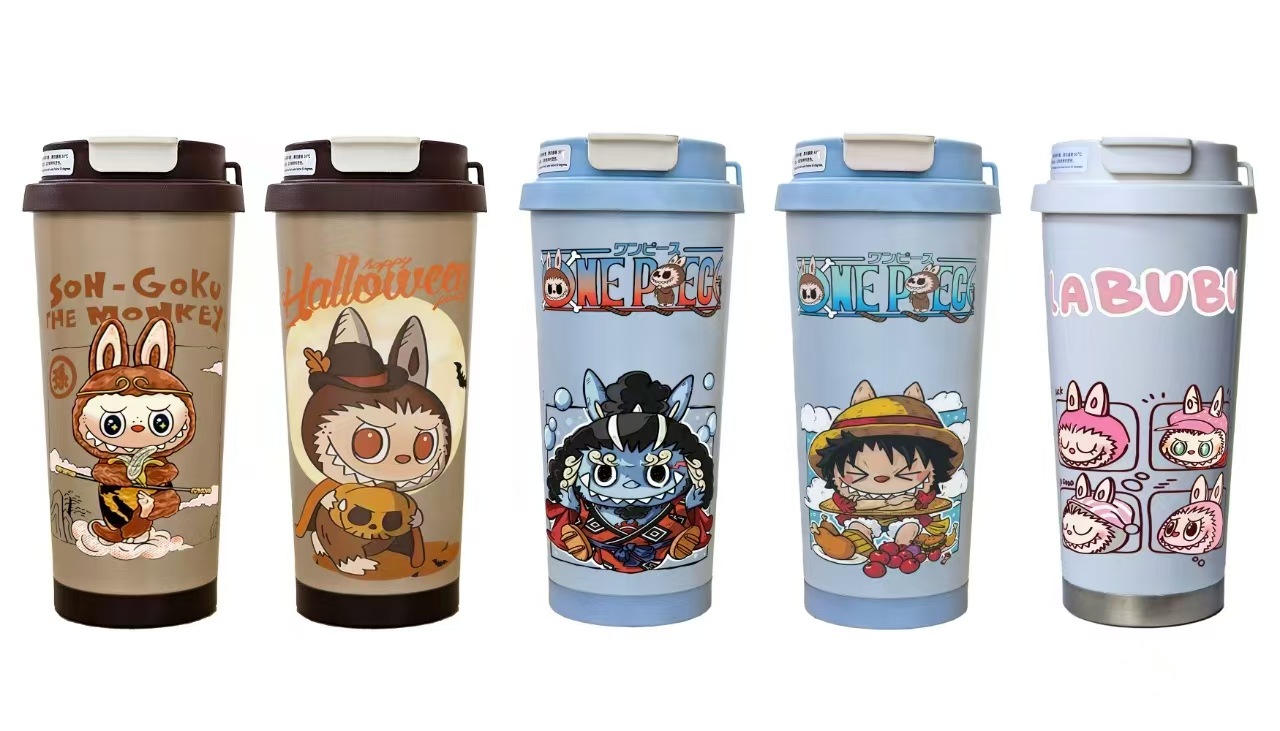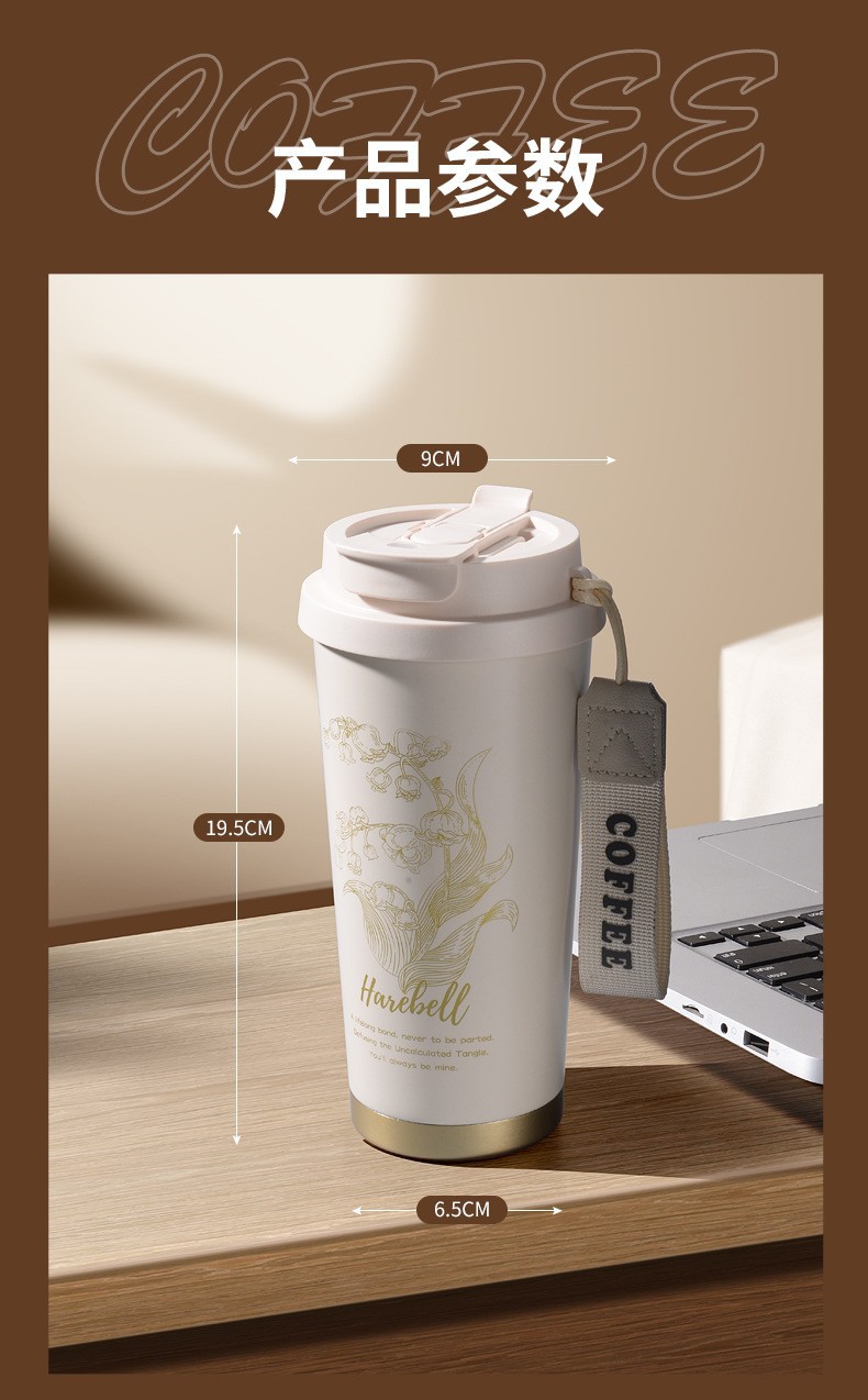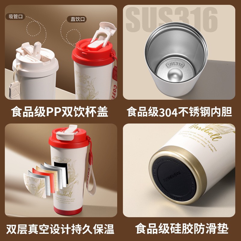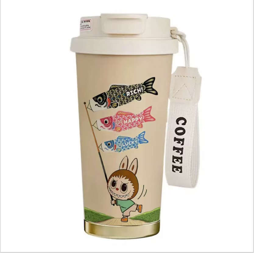 남학생과 여학생을 위한 인기 있는 국경 간 스테인레스 스틸 만화 은방울꽃 커피 컵 휴대용 손잡이 보온병 컵, 고급스러운 밀짚 컵