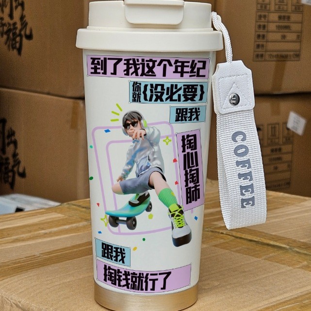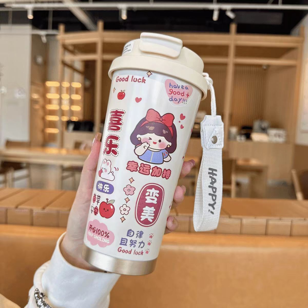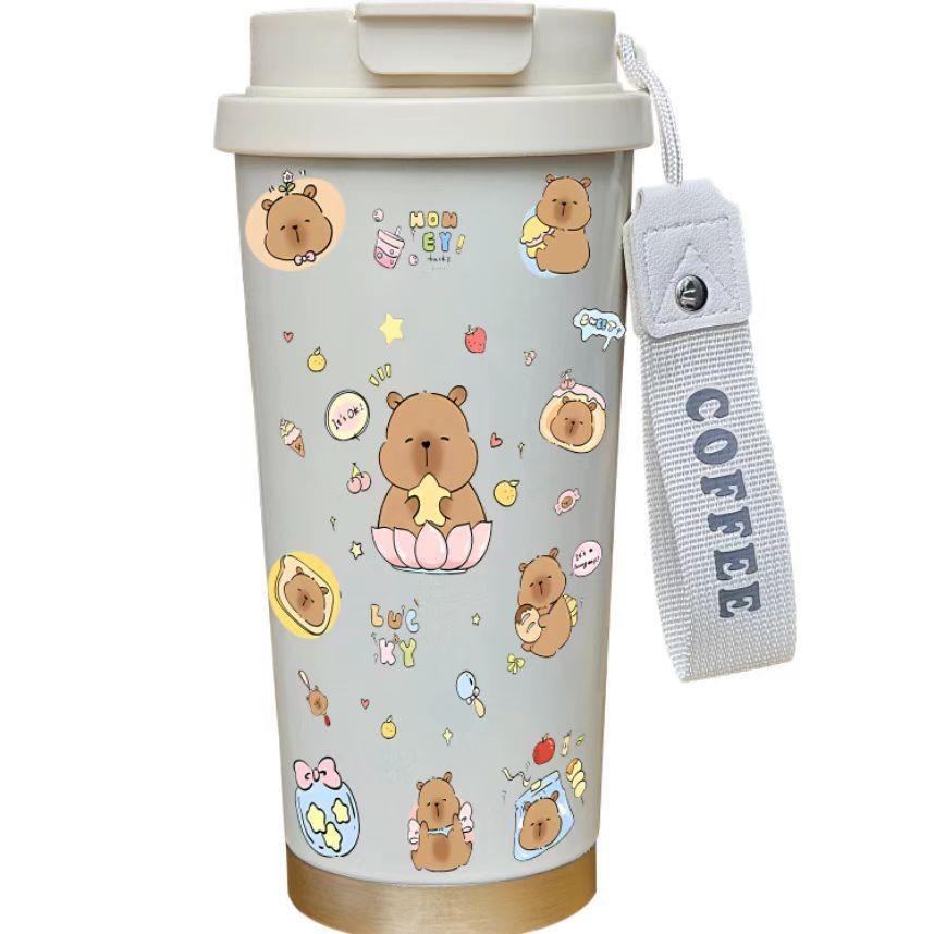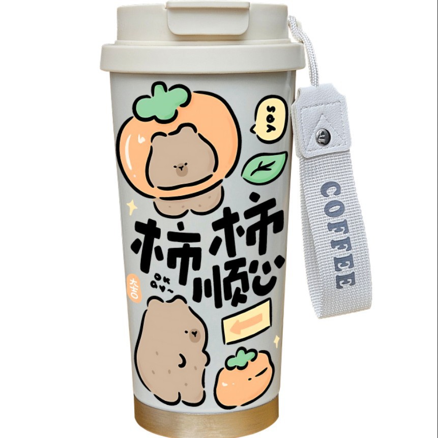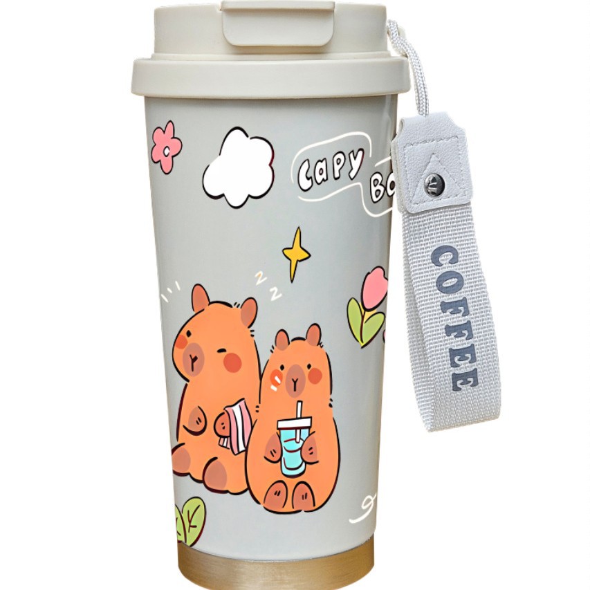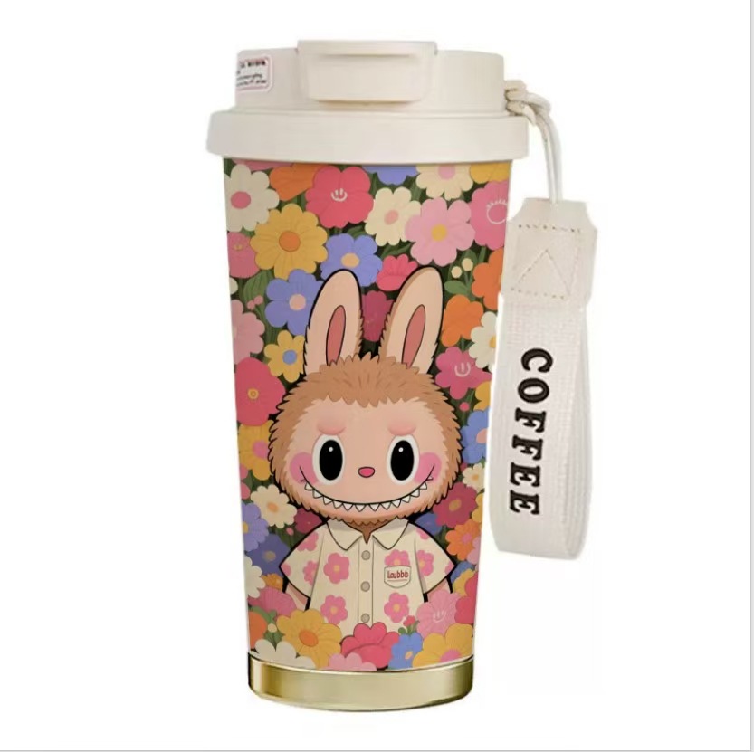 남학생과 여학생을 위한 인기 있는 국경 간 스테인레스 스틸 만화 은방울꽃 커피 컵 휴대용 손잡이 보온병 컵, 고급스러운 밀짚 컵스토어 가기