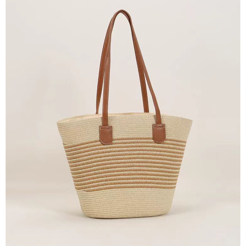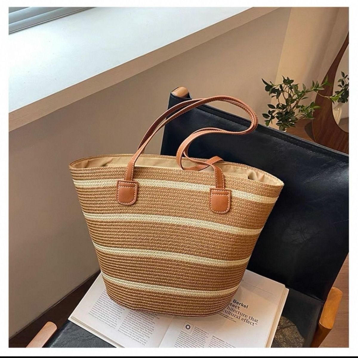 밀짚 가방 비치 블랙 스트라이프 2025 새로운 캐주얼 여름 숄더 백 패션 토트 다용도 가방 여성 배낭스토어 가기