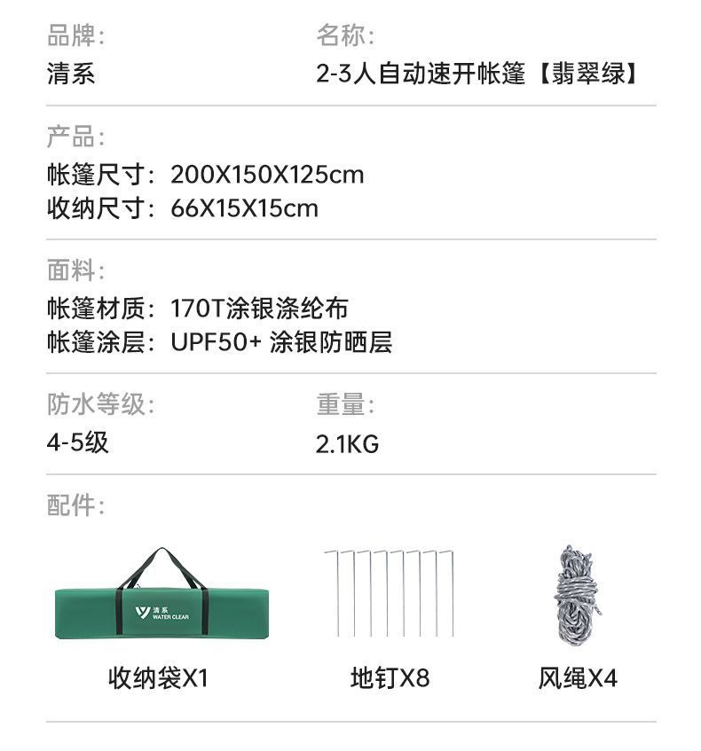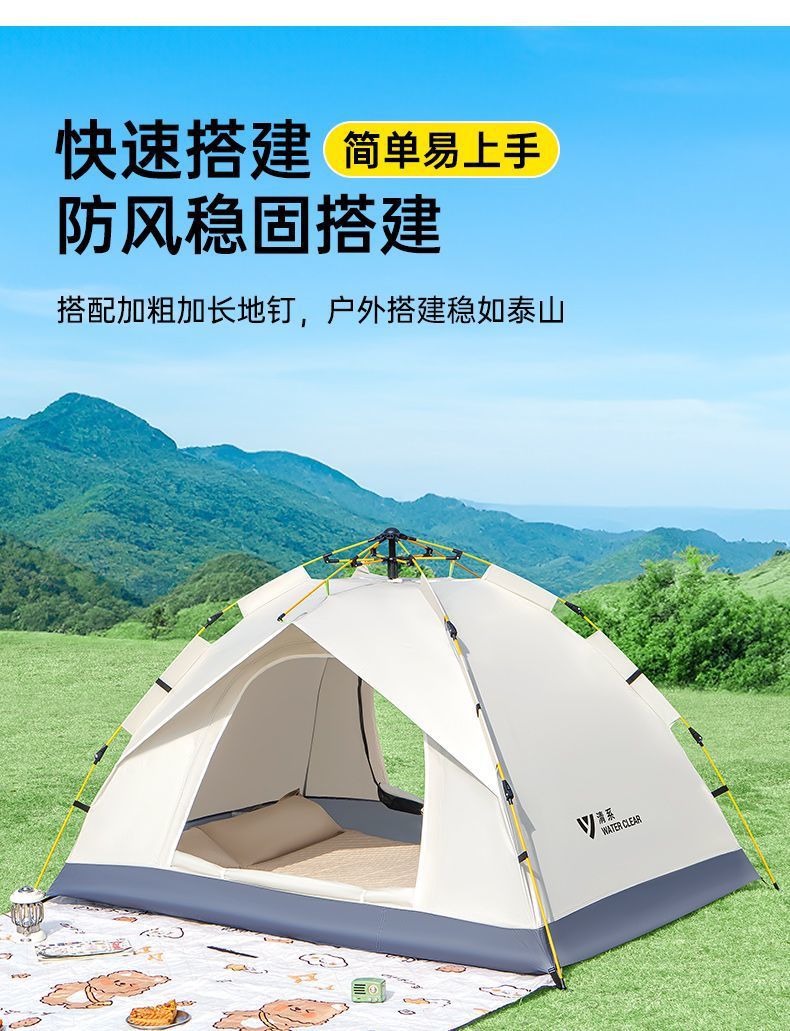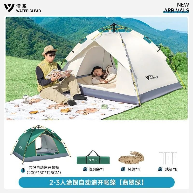 Qingsi 가족 완전 자동 텐트, 자외선 차단 및 방수, 2인용 이중층, 설치가 필요 없는 야외 캠핑 공원 야외 텐트스토어 가기