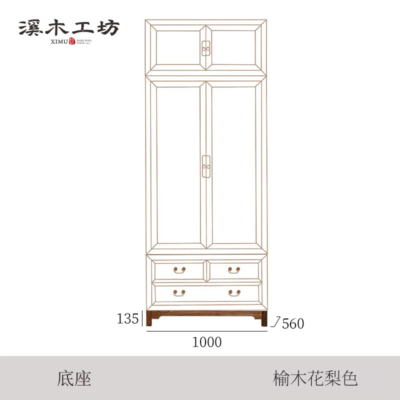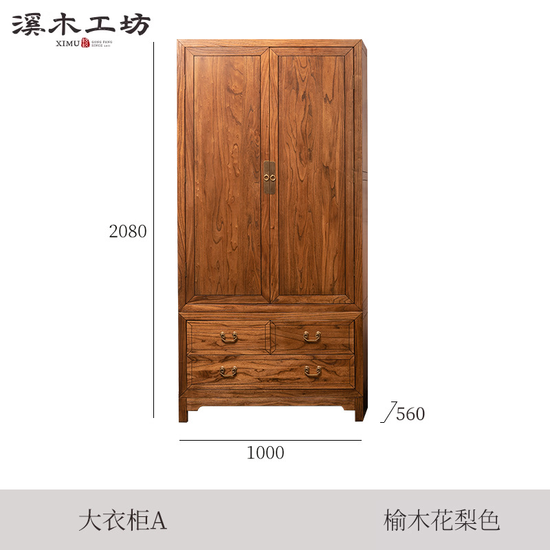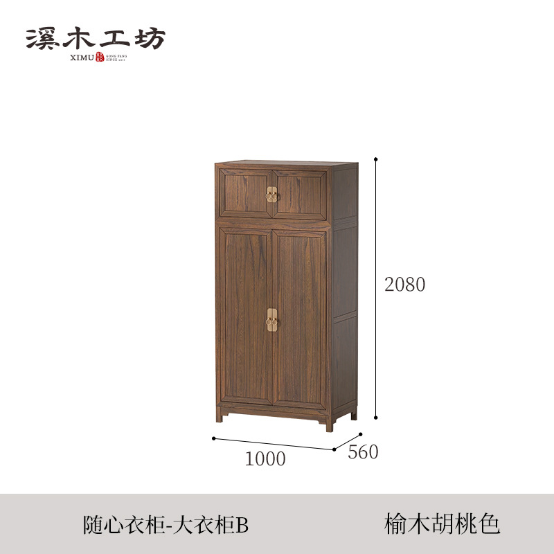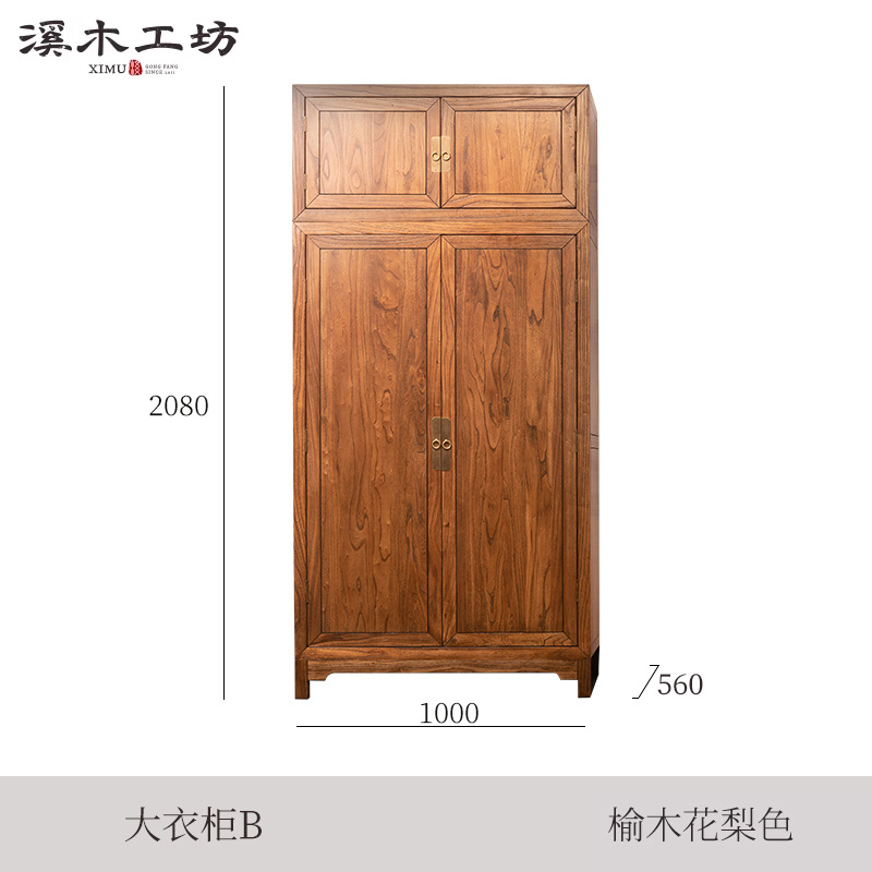 • Xixin 옷장 양문형 베이스-[느릅나무 로즈우드 컬러] + 문 2개 + 완전 조립