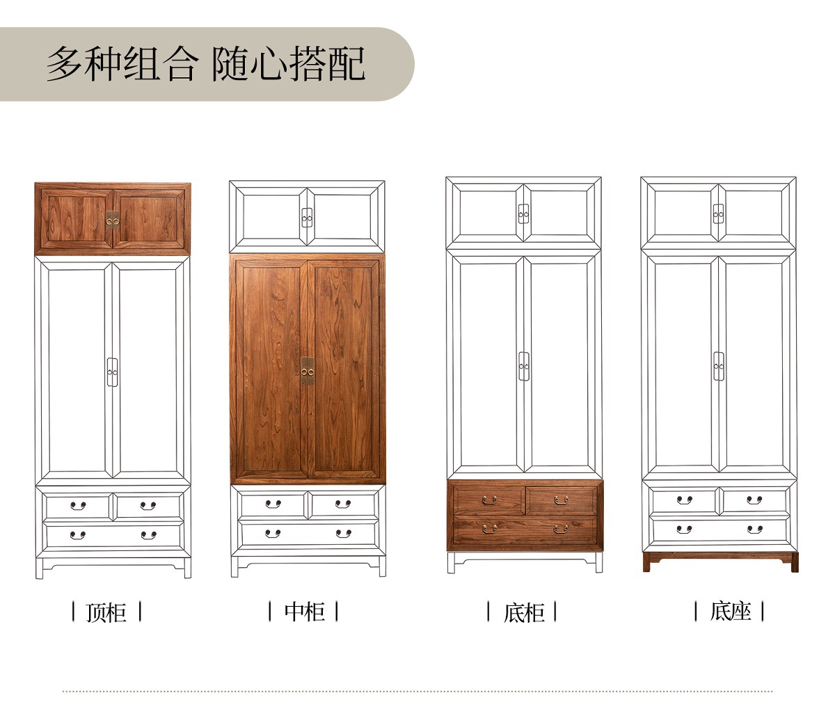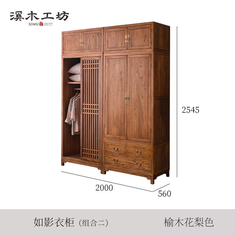 • [조합 추천] Xixin 옷장 양문형 상단 캐비닛 + Ronying 옷장 상단 캐비닛 - [느릅나무 로즈우드 색상] + 문 2개 + 완전 조립