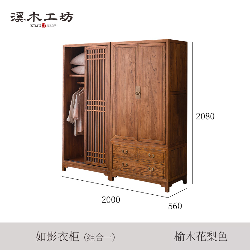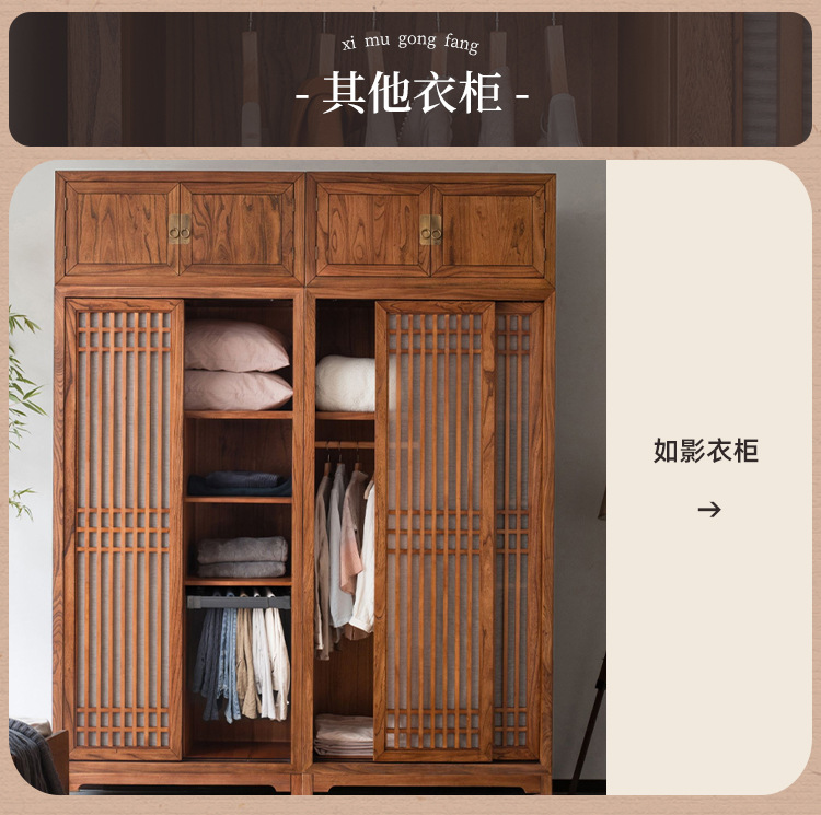 • [조합추천] Xixin 옷장 양문형 대형 옷장 A+미닫이문 옷장 [느릅나무 로즈우드 컬러] + 문 2개 + 완전 조립