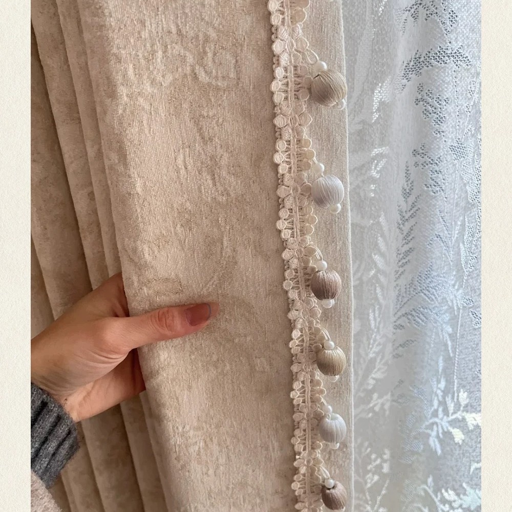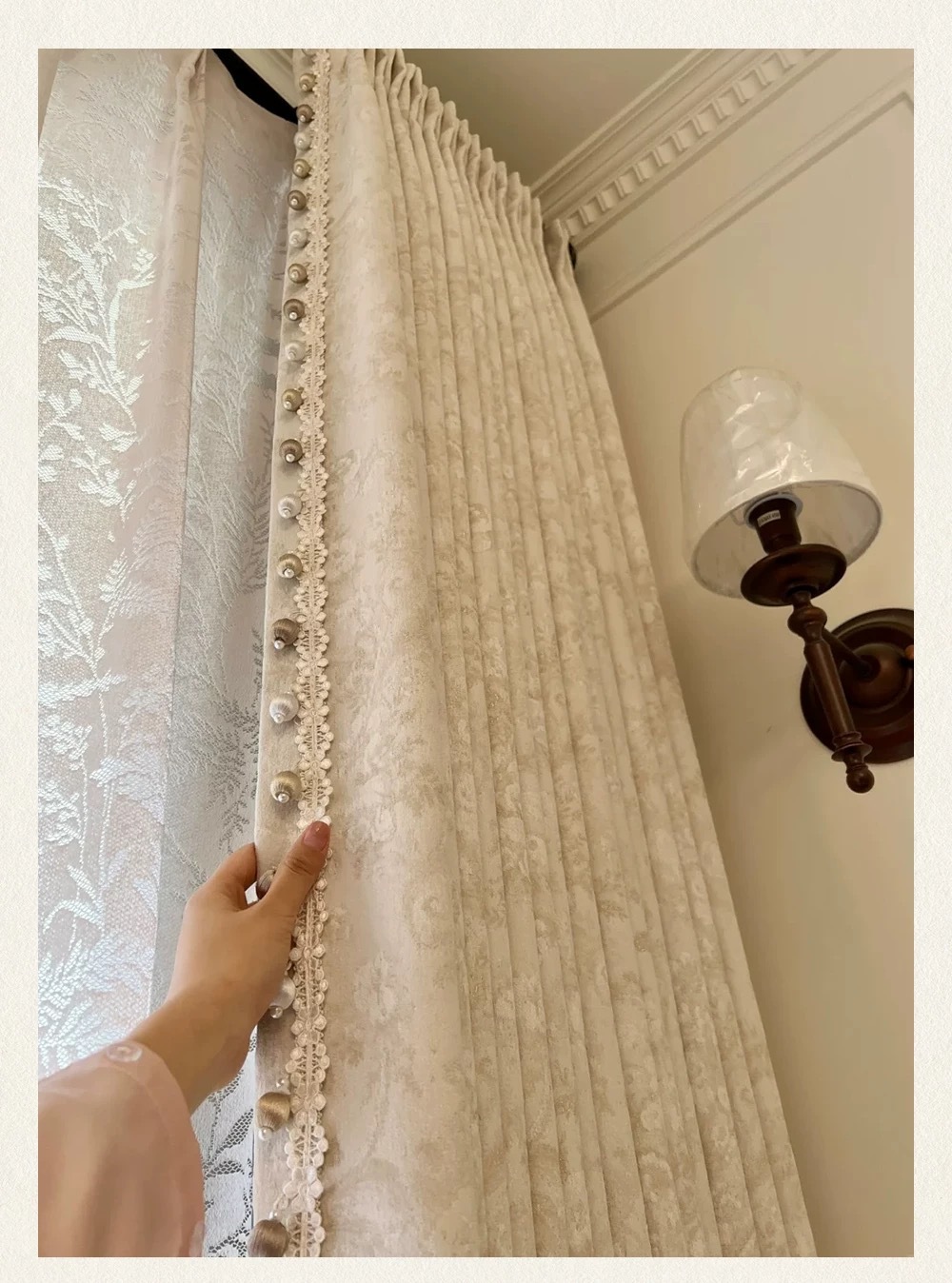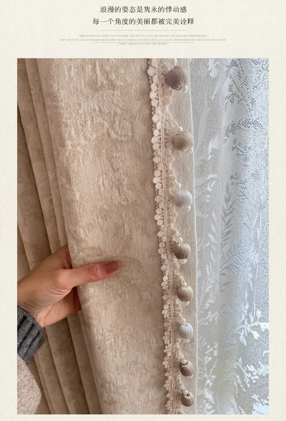 새로운 모리스 플라워 프렌치 레트로 셔닐 거실 침실 커튼 하이 엔드 빛 차단 커튼 3천 골드 스타일