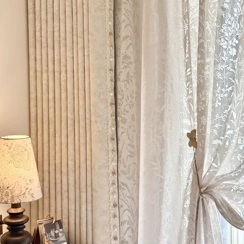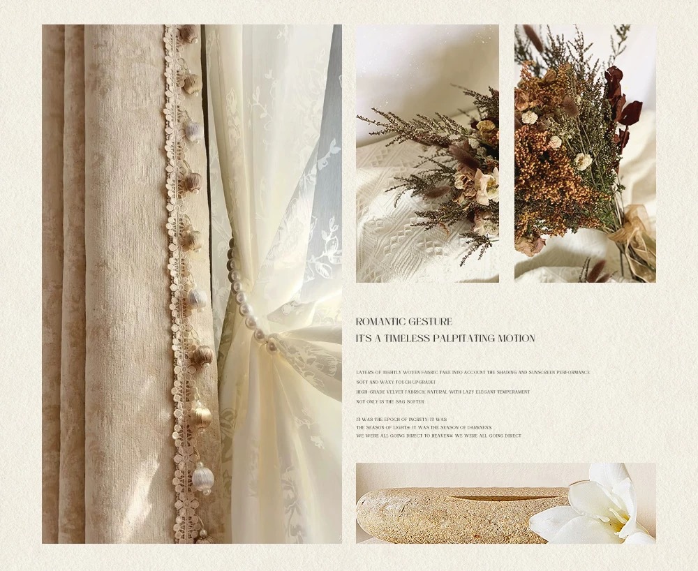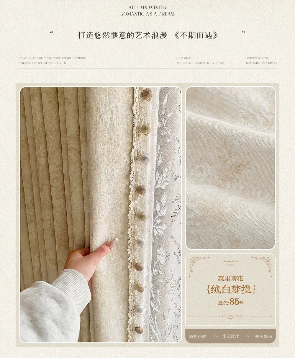 새로운 모리스 플라워 프렌치 레트로 셔닐 거실 침실 커튼 하이 엔드 빛 차단 커튼 3천 골드 스타일스토어 가기