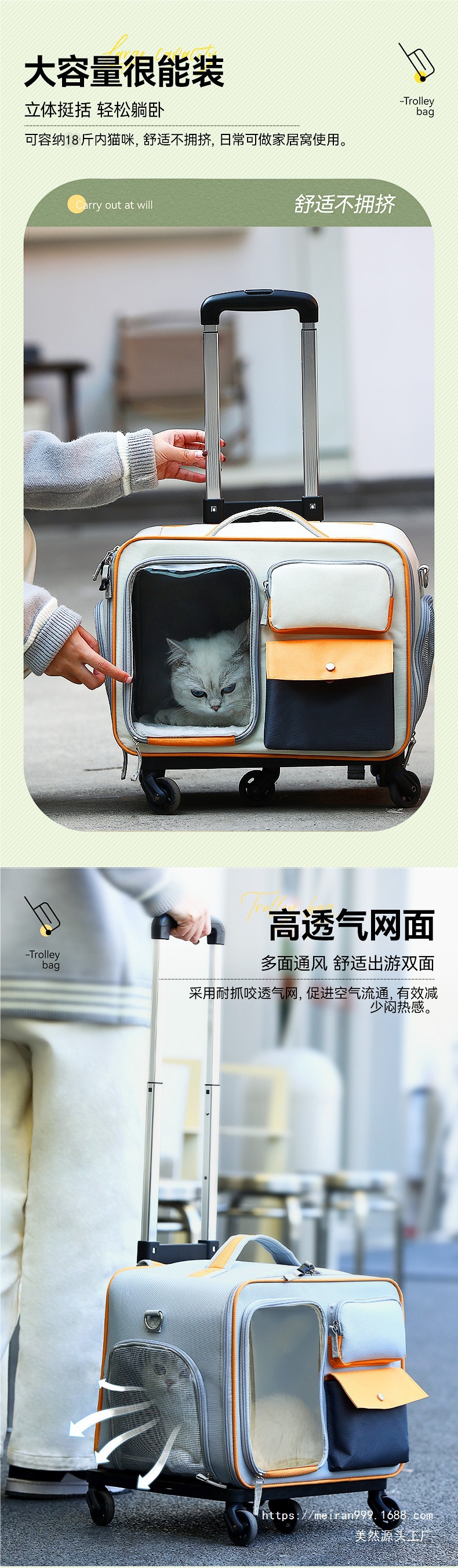 고양이 가방, 휴대용 애완동물 트롤리 케이스, 소형견 가방, 고급스러운 항스트레스 고양이 배낭