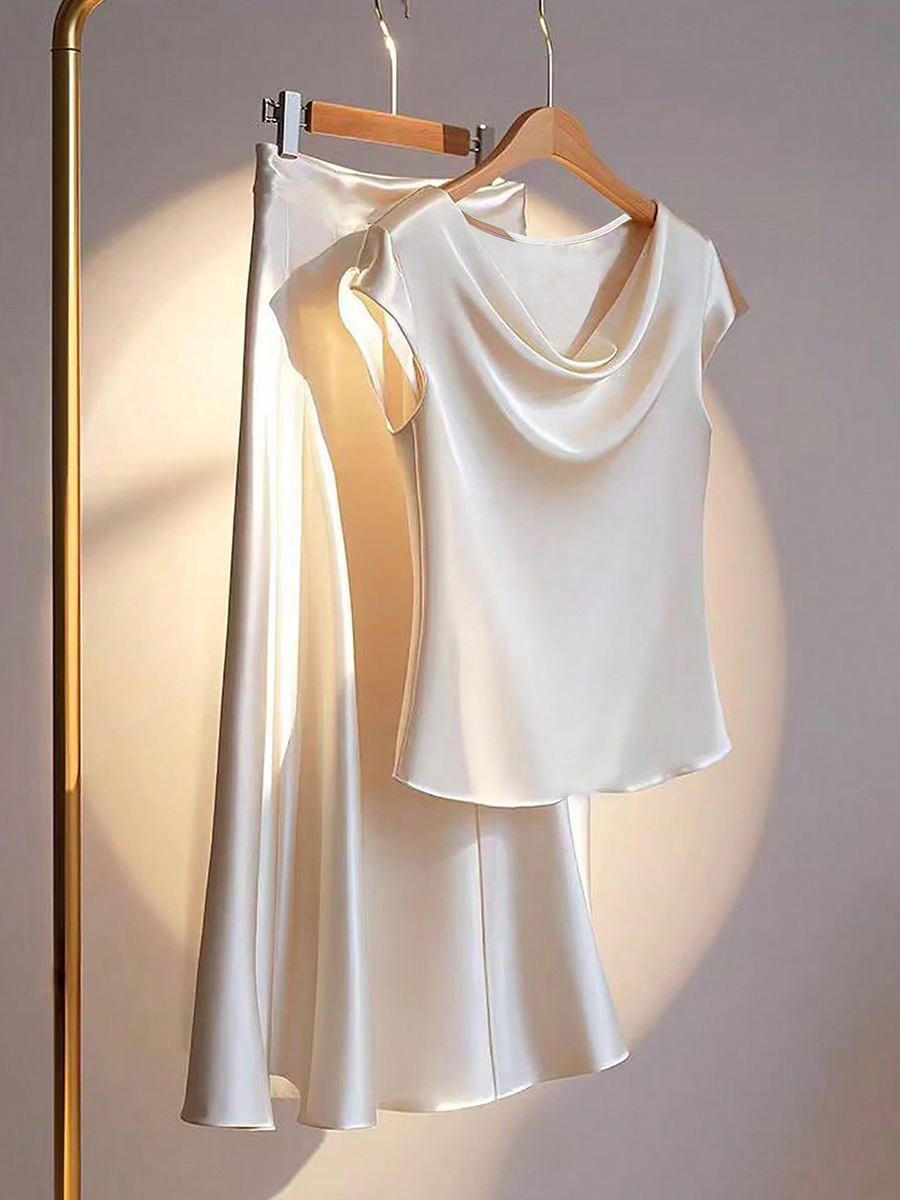 국경 간 이베이 독립 스테이션 대외 무역 여성 의류 여름 새로운 유럽과 미국 스타일의 모조 실크 반팔 스커트 정장